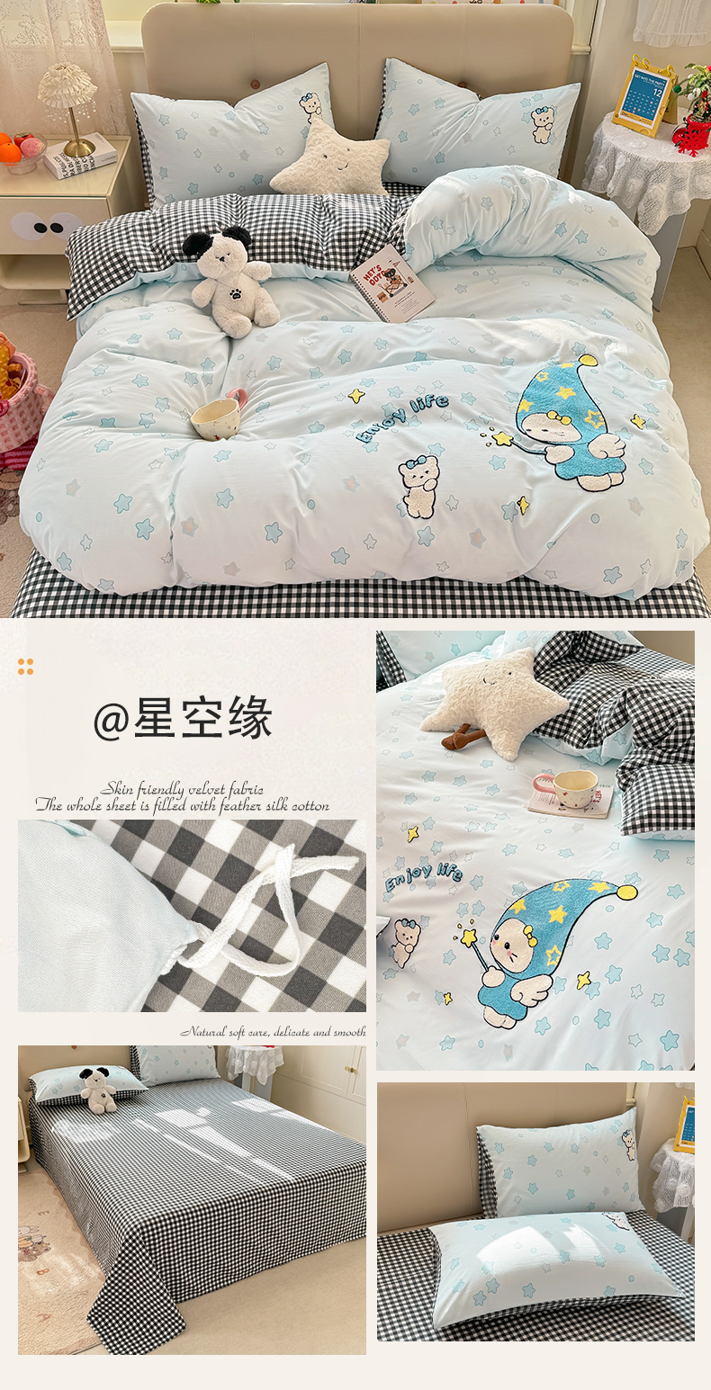 (总)曲之慕 2025新款A类高克重牛奶绒印花毛巾绣四件套,毛巾绣-粉小兔,毛巾绣-绿森林,毛巾绣-马戏团,毛巾绣-暖暖熊,毛巾绣-小花园