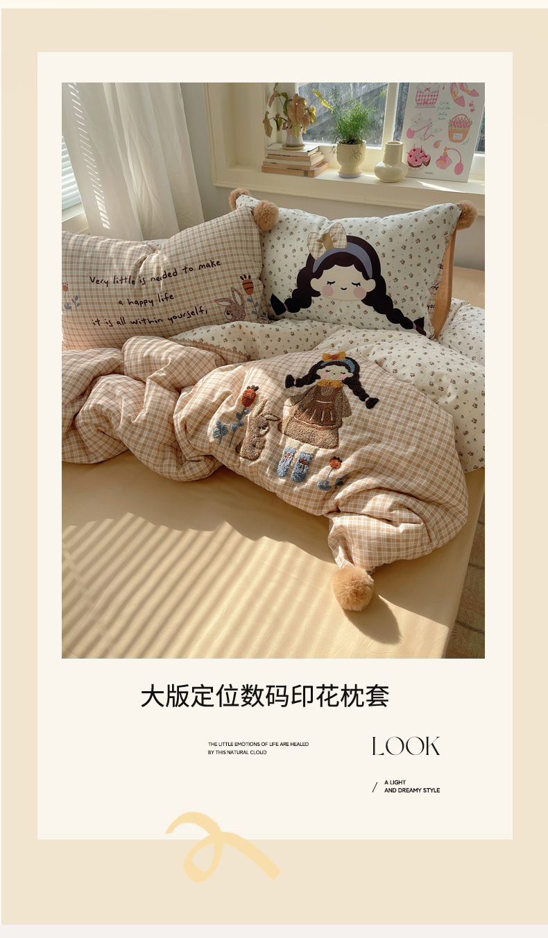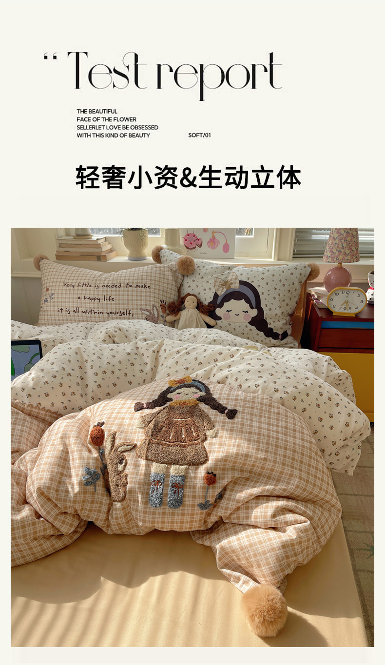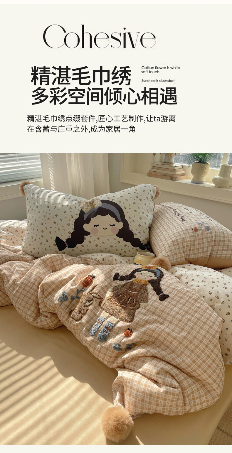 丽涵家纺 2026新款全棉数码印花毛巾绣四件套-少女派 甜茶女孩