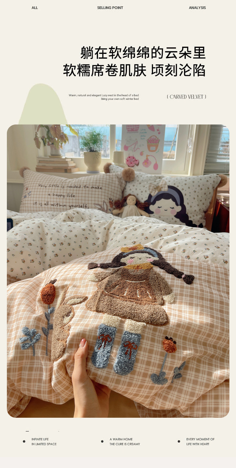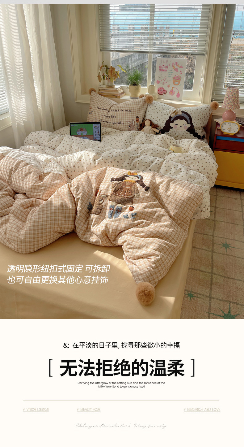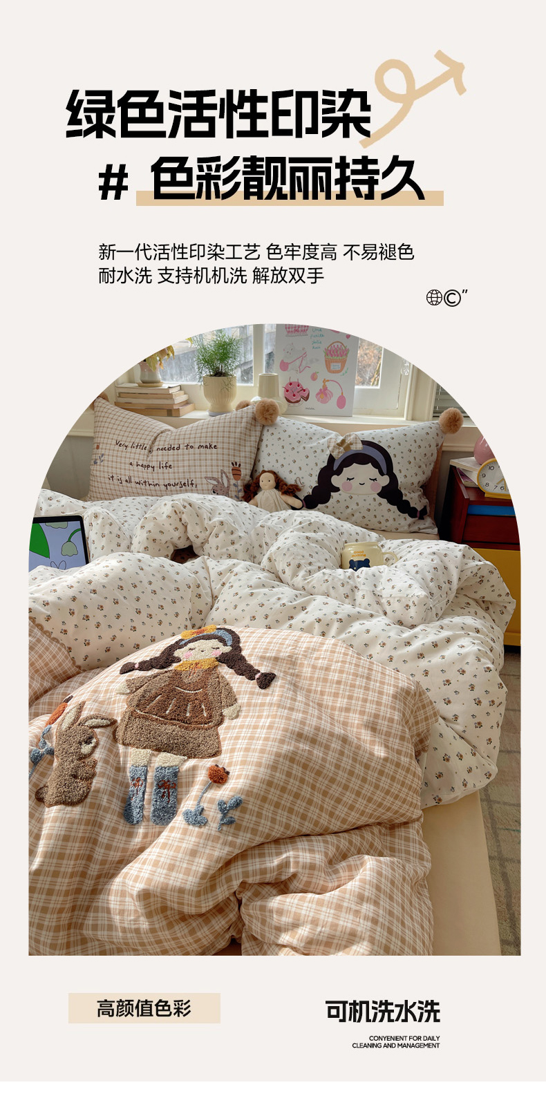丽涵家纺 2026新款全棉数码印花毛巾绣四件套-少女派 甜茶女孩