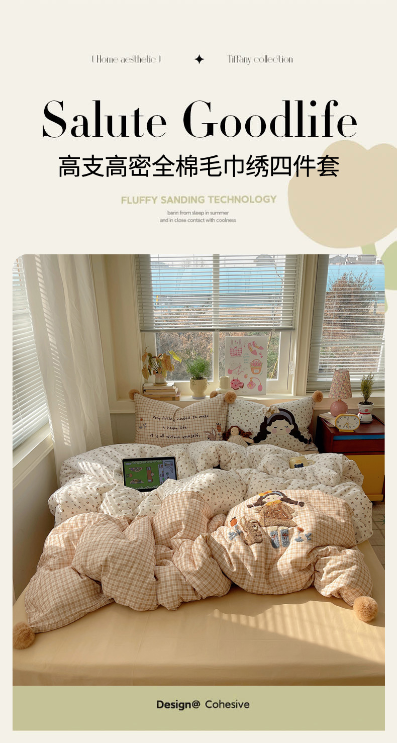(总)丽涵家纺 2026新款全棉数码印花毛巾绣四件套-少女派,懵懂少女,熊崽奇遇,抱抱熊,甜梦满溢,甜茶女孩
