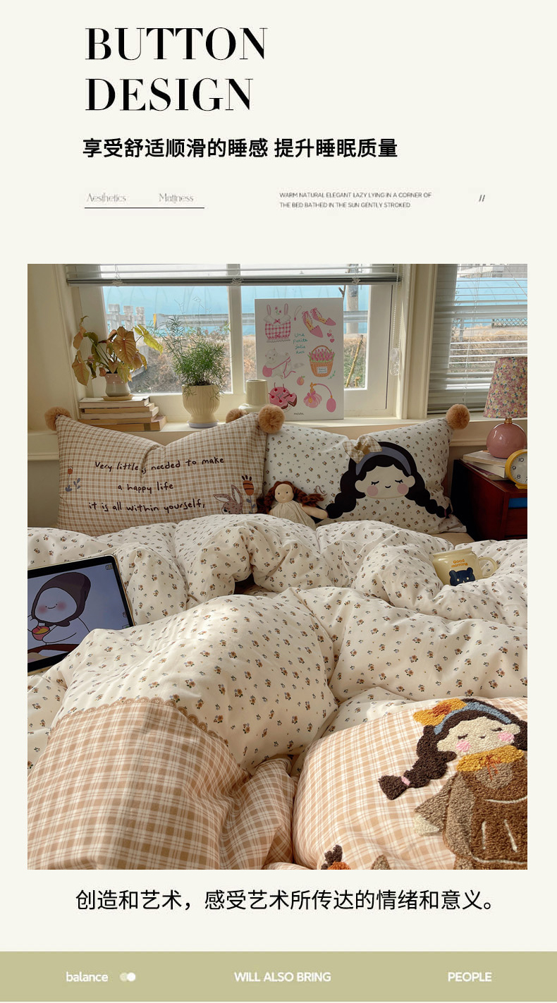 商品名称:丽涵家纺 2026新款全棉数码印花毛巾绣四件套-少女派 甜茶女孩