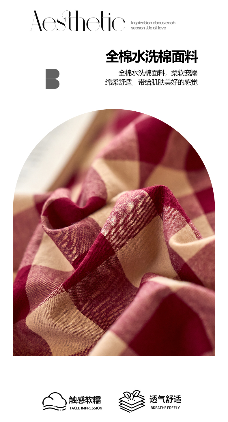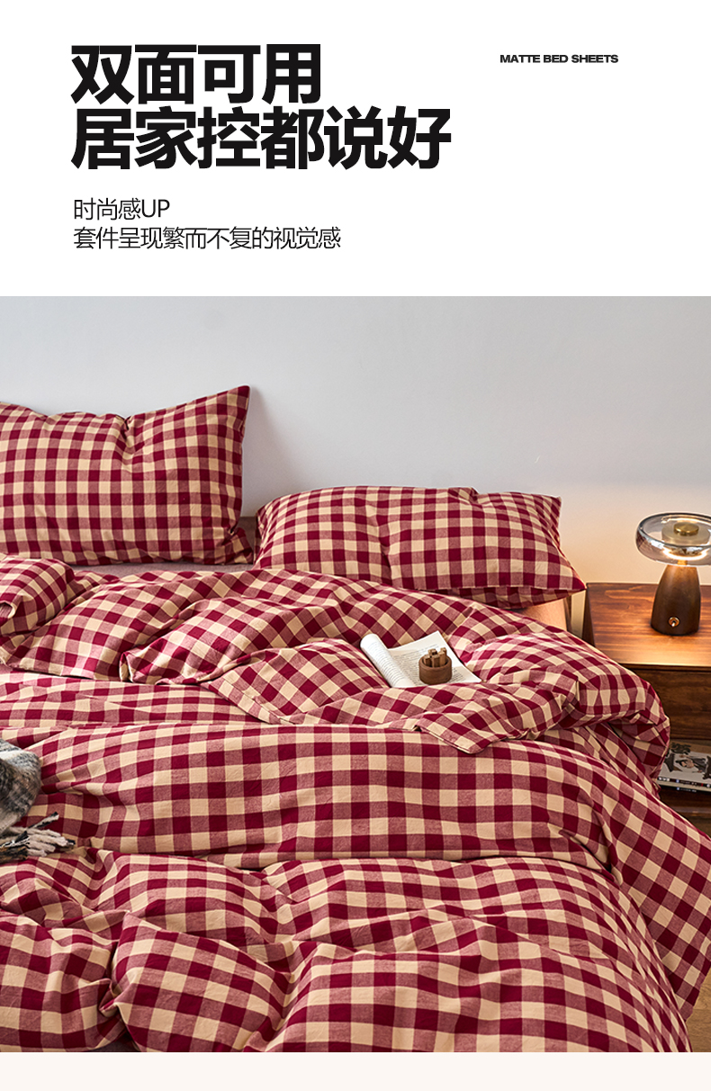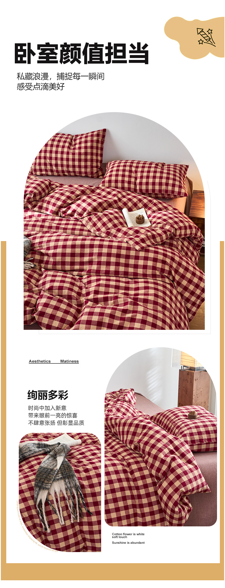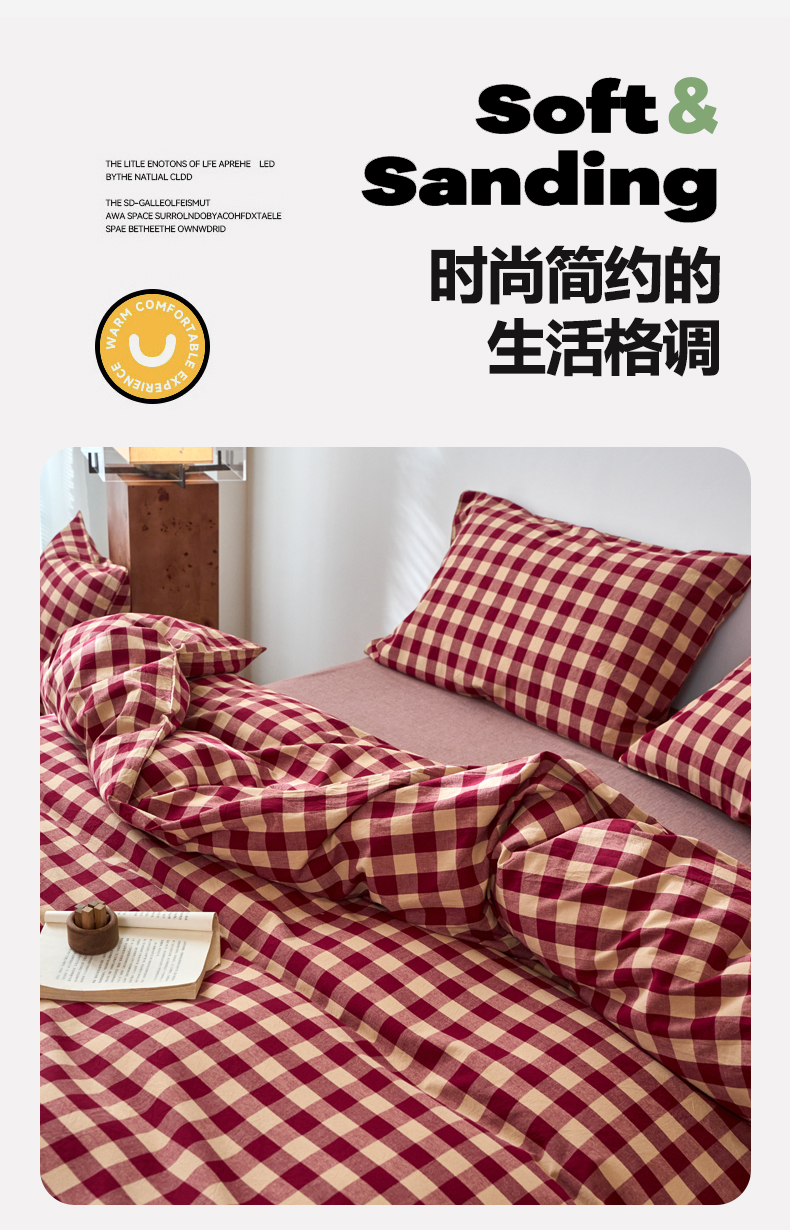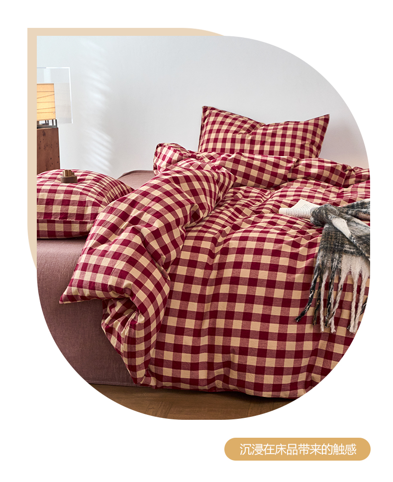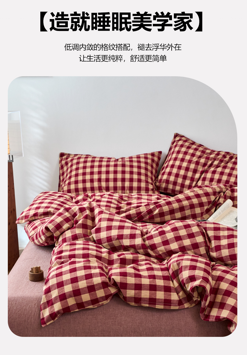 当前位置: 91家纺网 > 商品网购 > 床品套件 > 四件套 > 全棉普通四件套 > 兰紫橙家纺 2026新款全棉A类深色复古色织方格子水洗棉-赫本雅素系列(含买家秀和质检报告) 雅素红