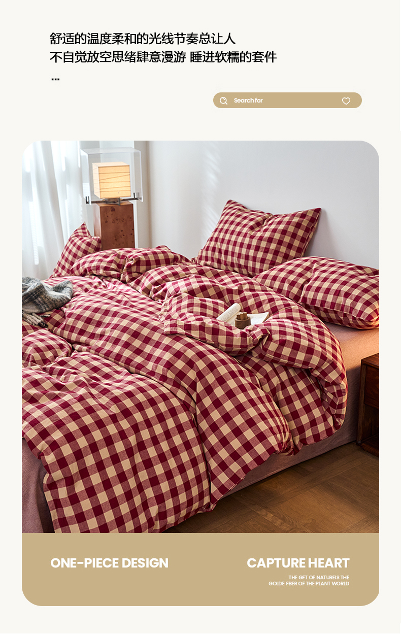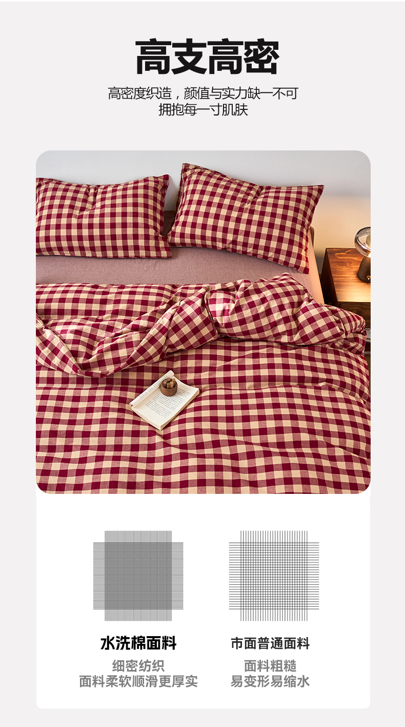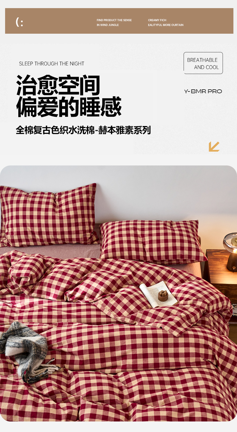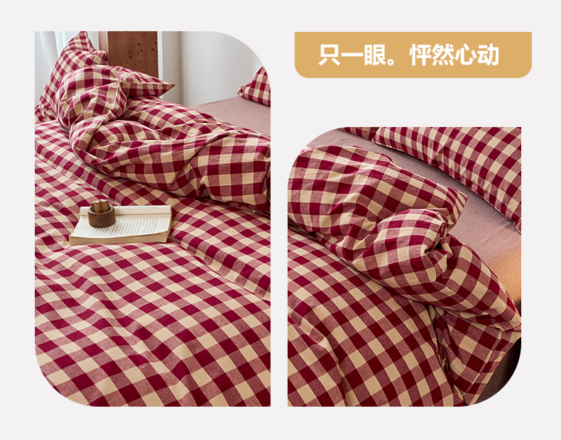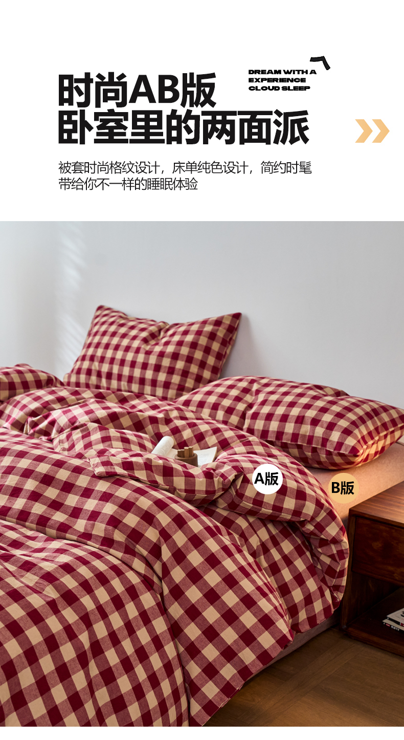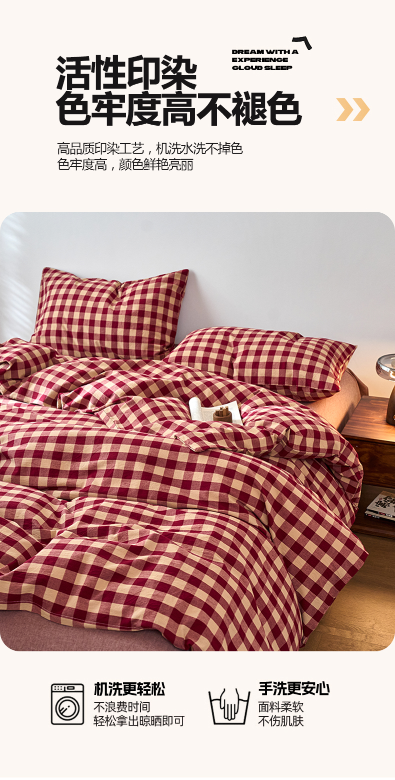 当前位置: 91家纺网 > 商品网购 > 床品套件 > 四件套 > 全棉普通四件套 > 兰紫橙家纺 2026新款全棉A类深色复古色织方格子水洗棉-赫本雅素系列(含买家秀和质检报告) 雅素红