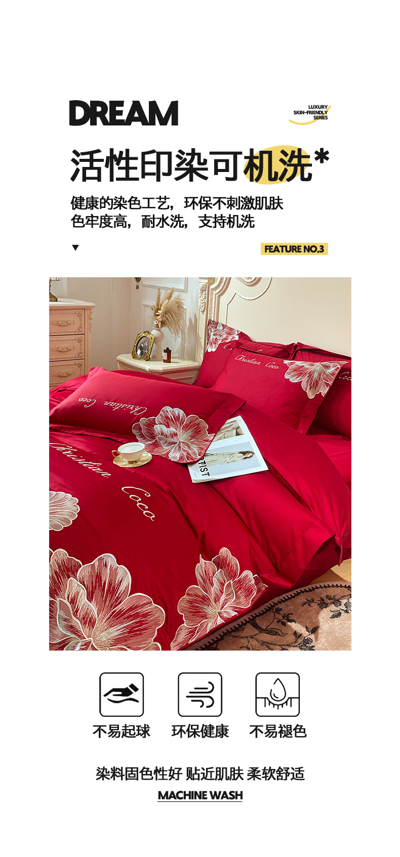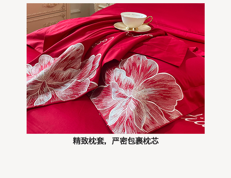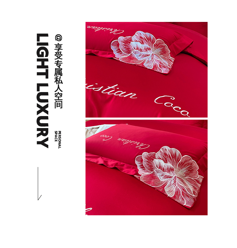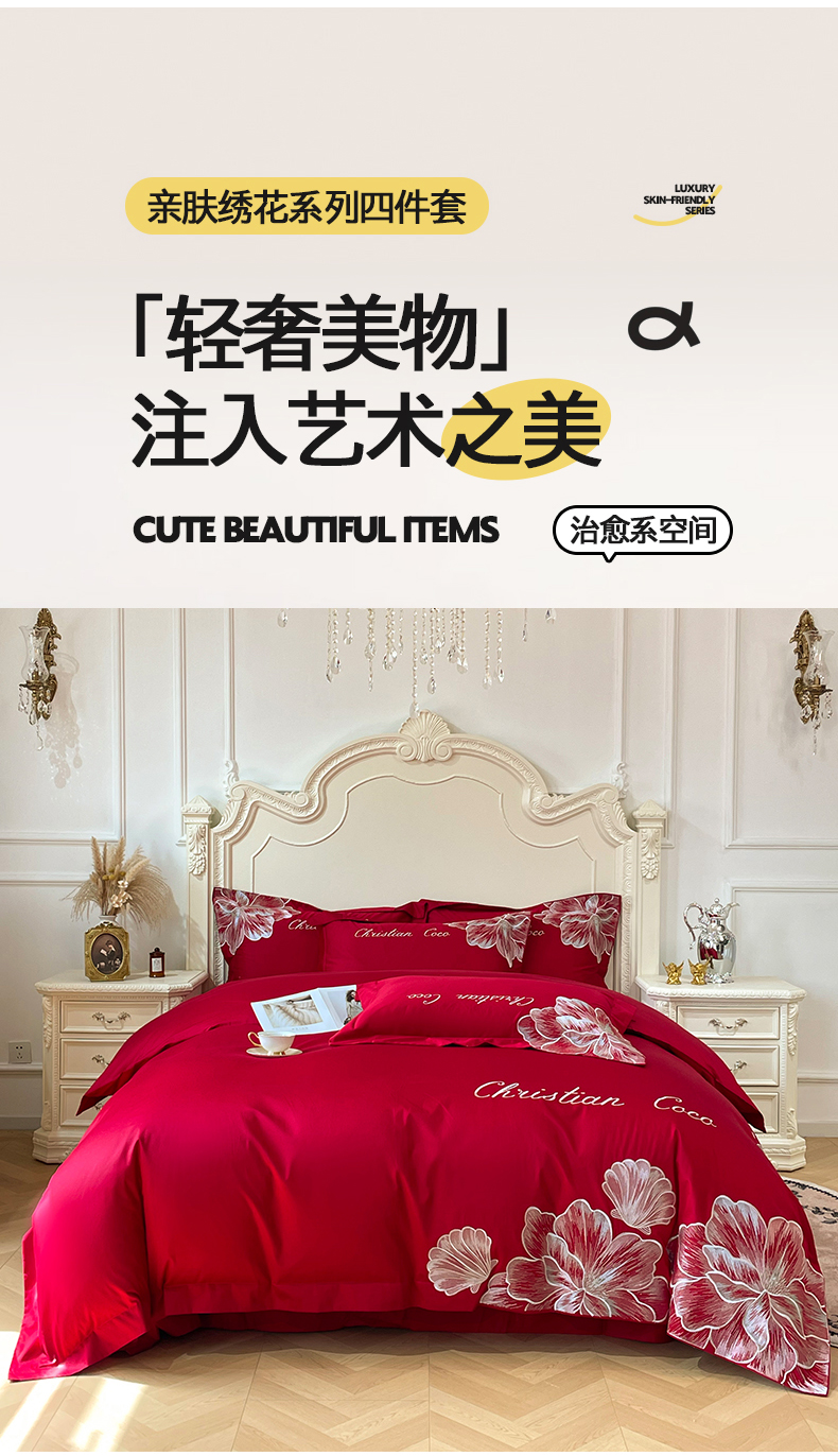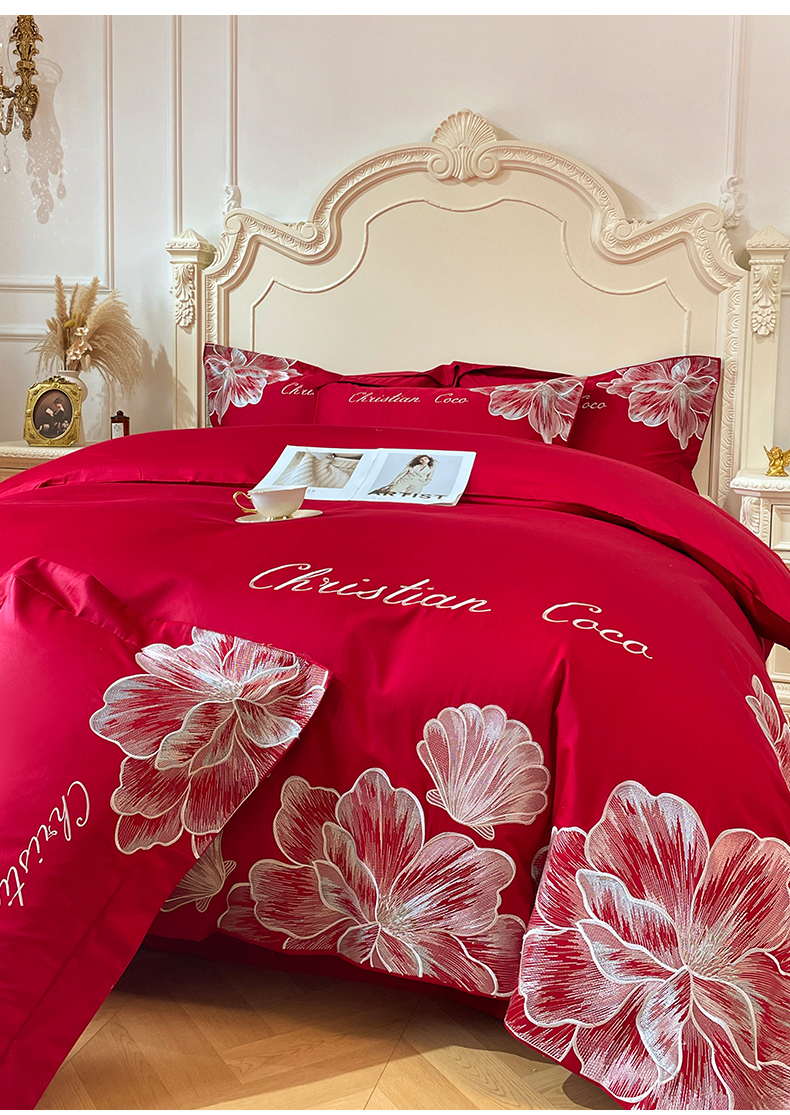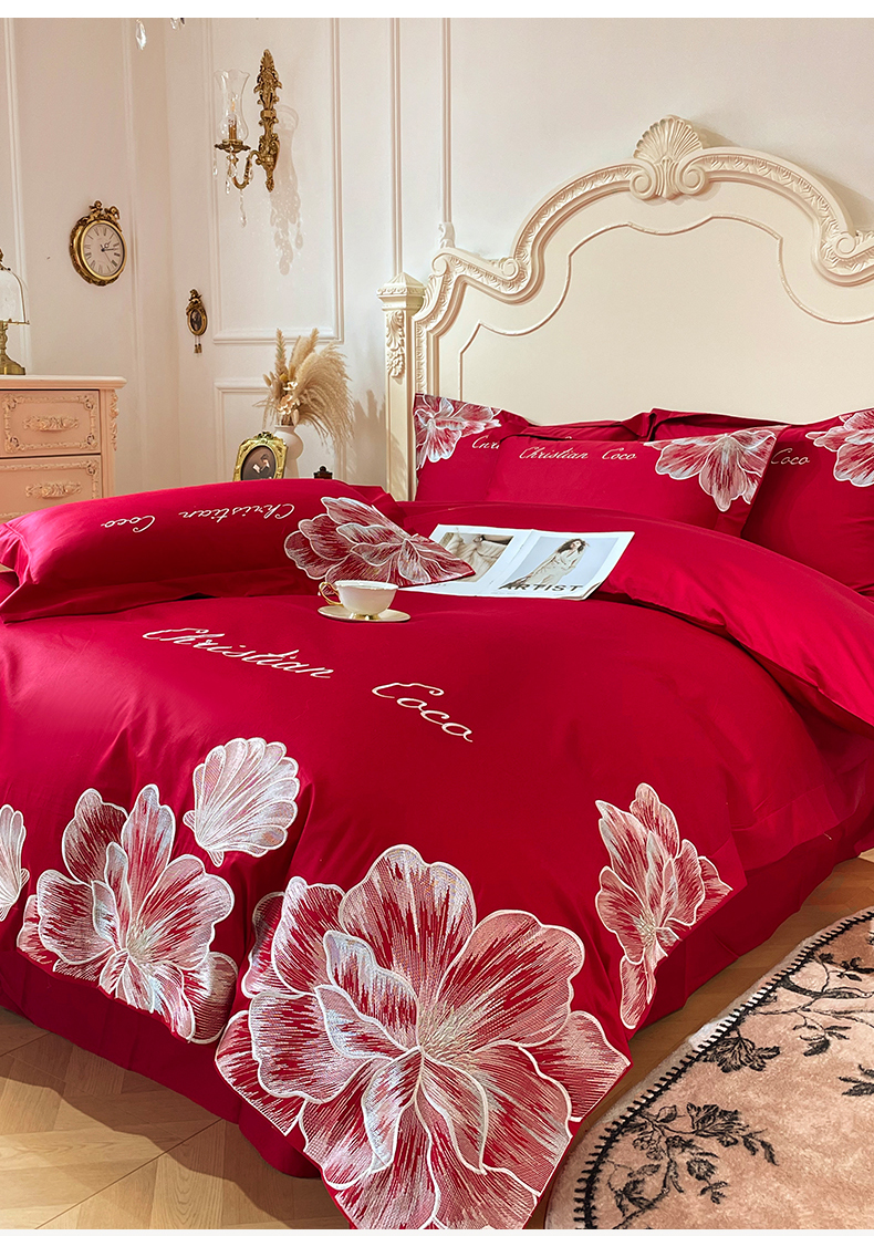 当前位置: 91家纺网 > 商品网购 > 床品套件 > 四件套 > 其它四件套 > 置顶家纺 2026新款亲肤绣花-COCO小姐亲肤棉系列四件套 COCO小姐-大红