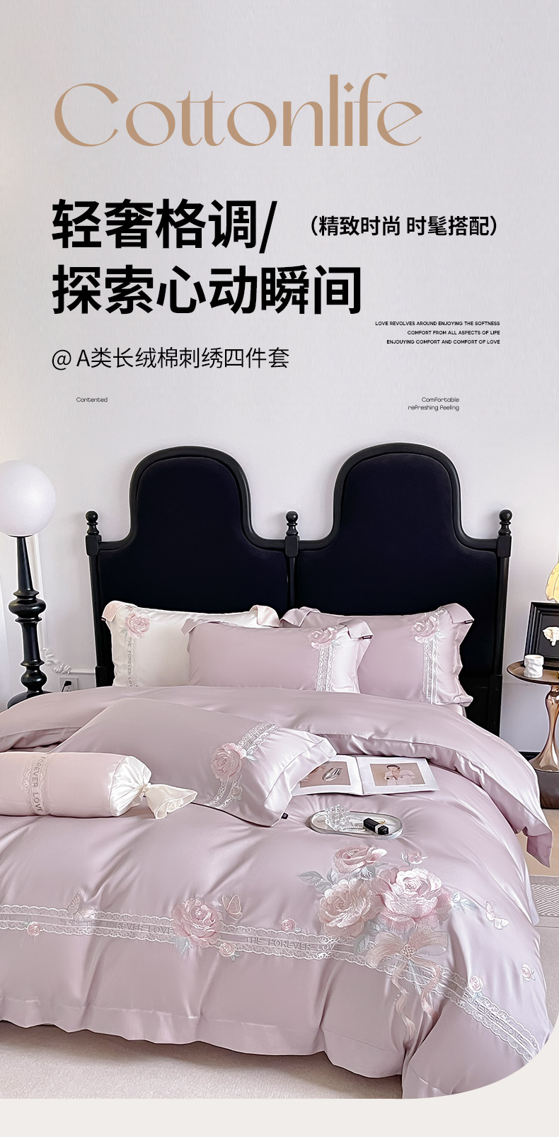 当前位置: 91家纺网 > 商品网购 > 床品套件 > 四件套 > 长绒棉四件套 > 2026春夏新款轻奢纯色A类长绒棉纯棉全棉重工刺绣被套床单四件套床上用品云栀 云栀-黛紫