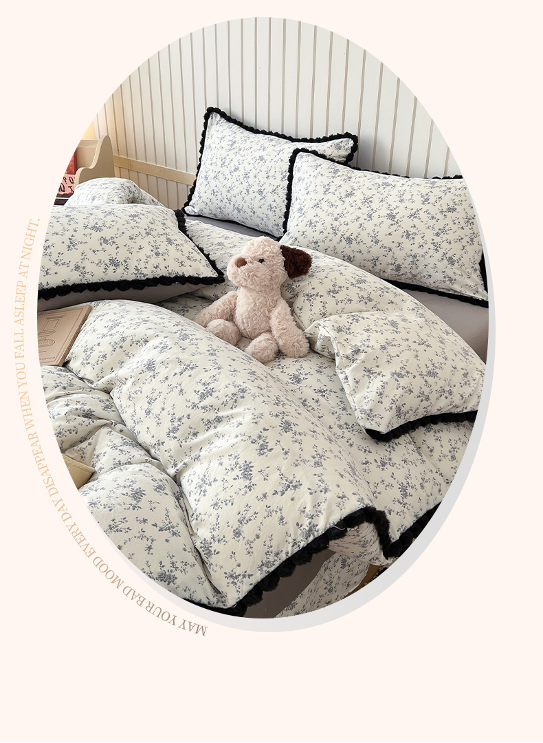 (总)吾欢心 2026春夏新款古法水洗仿棉韩版双层花边四件套,KT猫,斑马,彩色蝴蝶结,卡通小狗,可爱星星人,萌宠宝贝,秘境花园,奶萌小狗,田园趣味,汐颜,小草莓,樱桃派