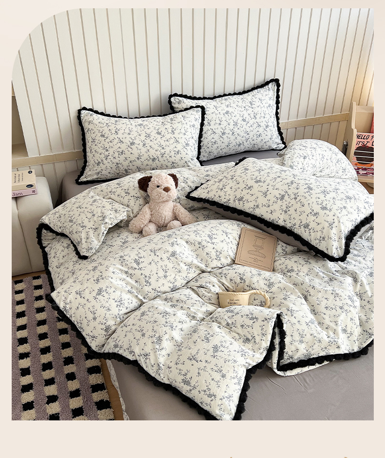 (总)吾欢心 2026春夏新款古法水洗仿棉毛球花边款四件套,半岛花园,茶野,椿屿,丛林小兔,粉豹纹,花颜悦色,咖豹纹,猫猫乐园,萌星人,甜心宝贝,小橘子,幸运小猫