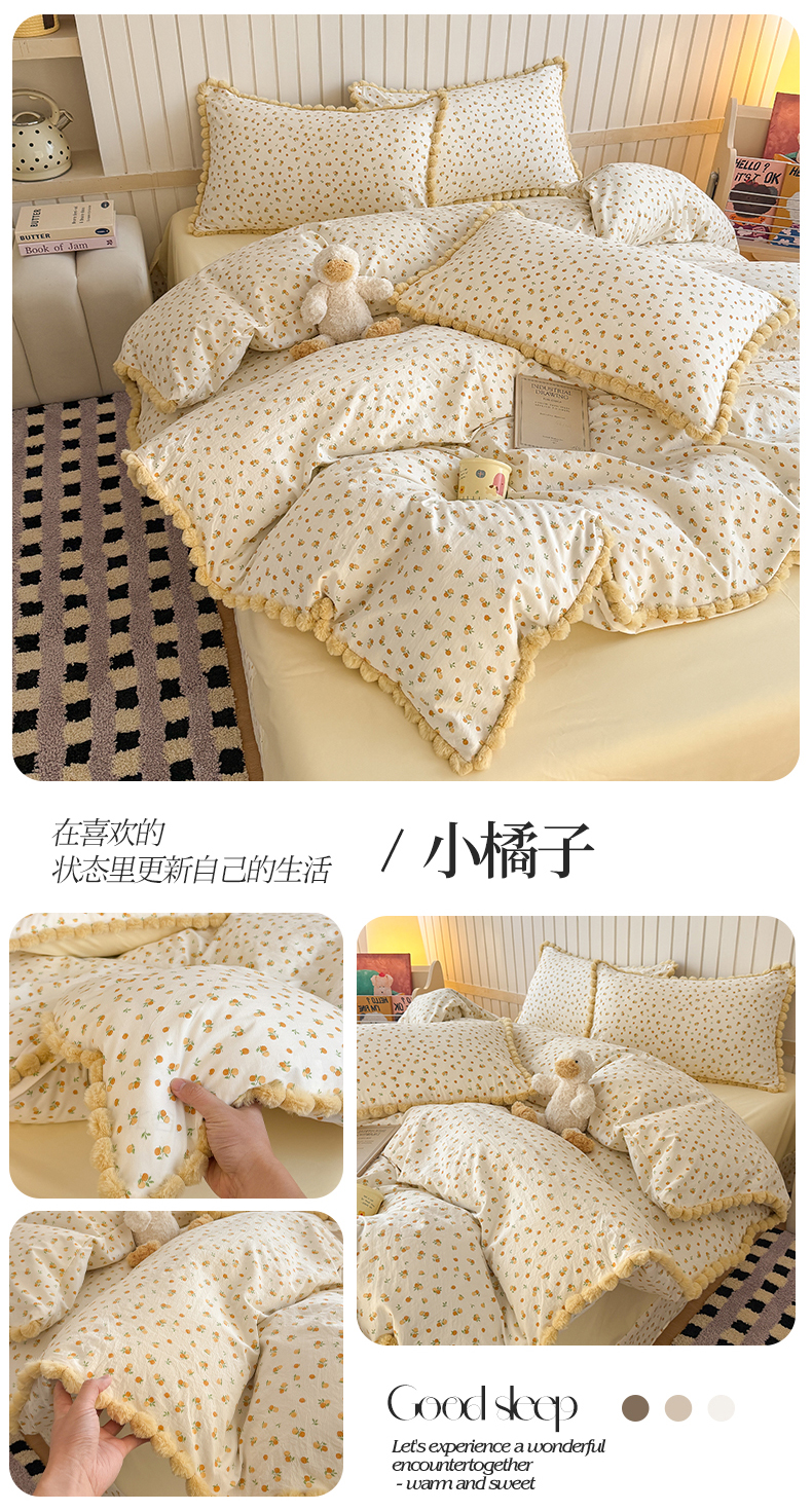 (总)吾欢心 2024新款韩版花边牛奶绒四件套,爱心草莓,爱心小樱桃,彩色郁金香,初恋蔷薇,调皮小兔,花颂,花野迷踪,花园时光,花园小熊,可爱狗狗,可爱小熊,绿爱心,梦境女孩,莫奈花园,奶油草莓,兔子小熊,晚安兔,鲜花萝莉,小雏菊,小柑橘,樱桃小兔,郁金香女孩,郁金香小兔,元气桃桃