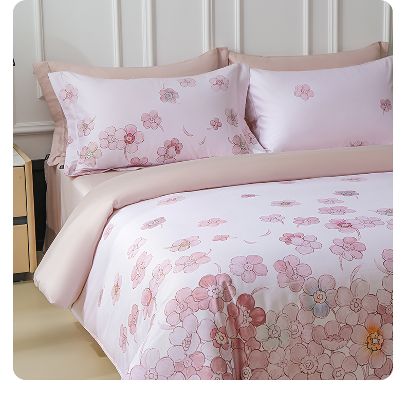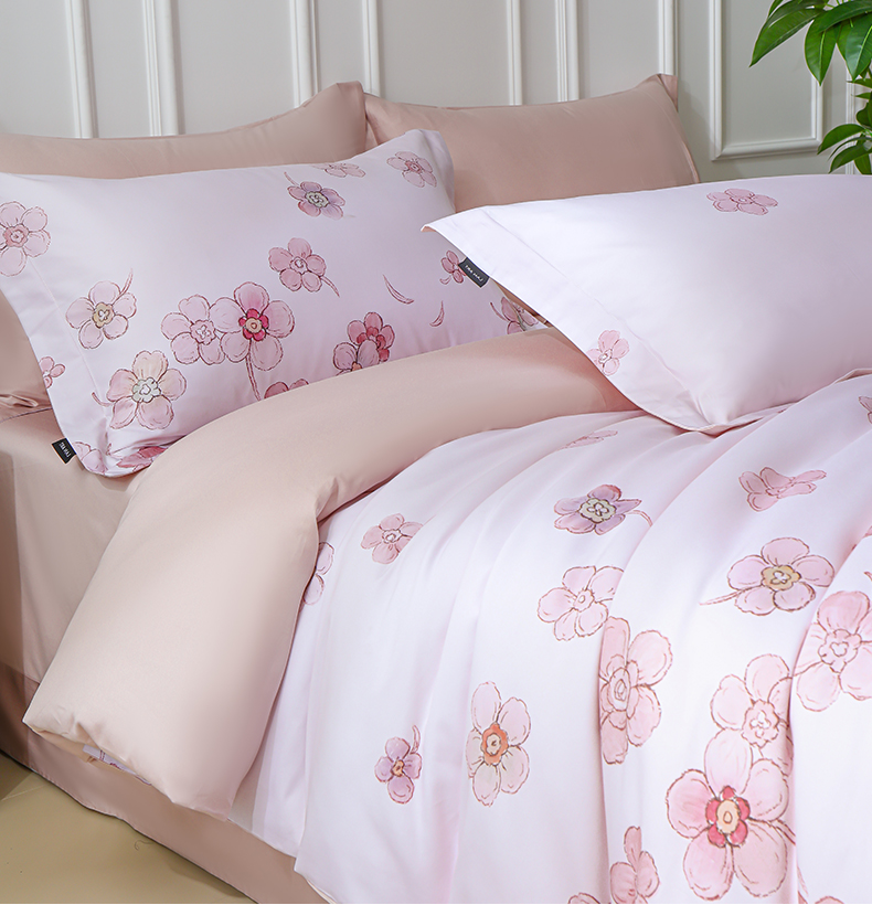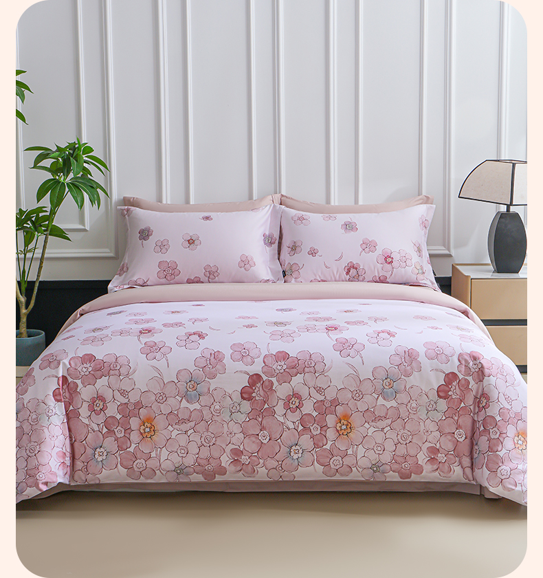 当前位置: 91家纺网 > 商品网购 > 床品套件 > 四件套 > 长绒棉四件套 > 洺兰家居 2025新款100支全棉新疆棉数码印花四件套长绒棉贴边床单床笠床上用品套件-专版(控价标准235加大255床笠245)春花烂漫-粉