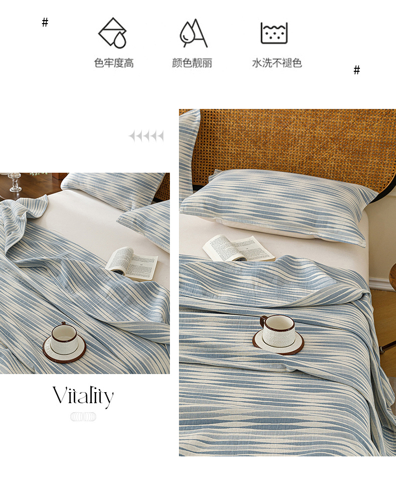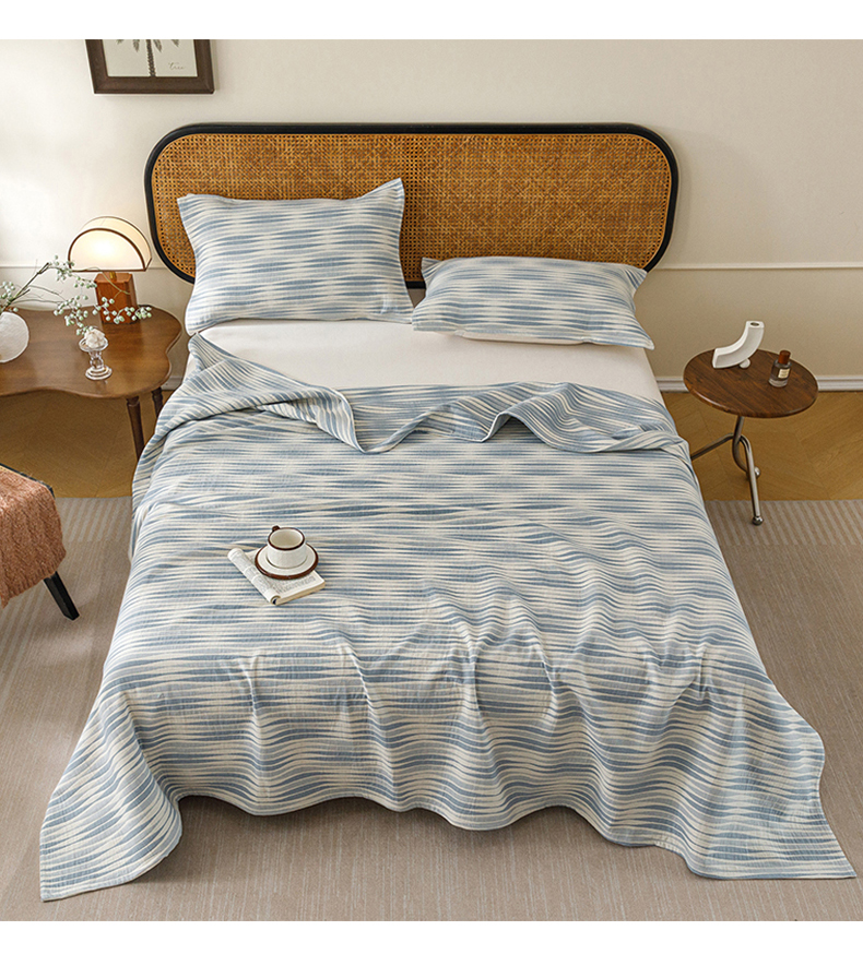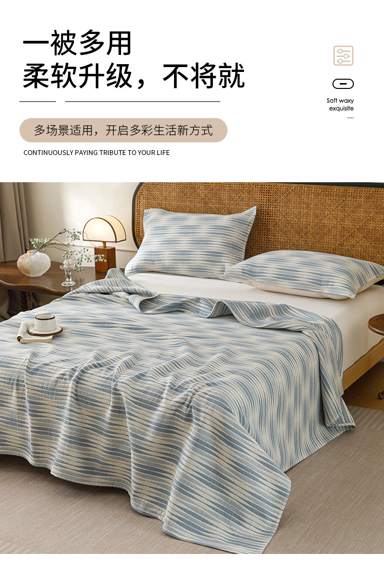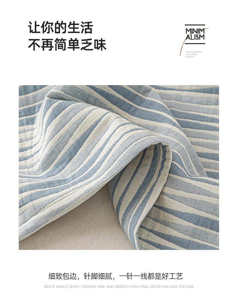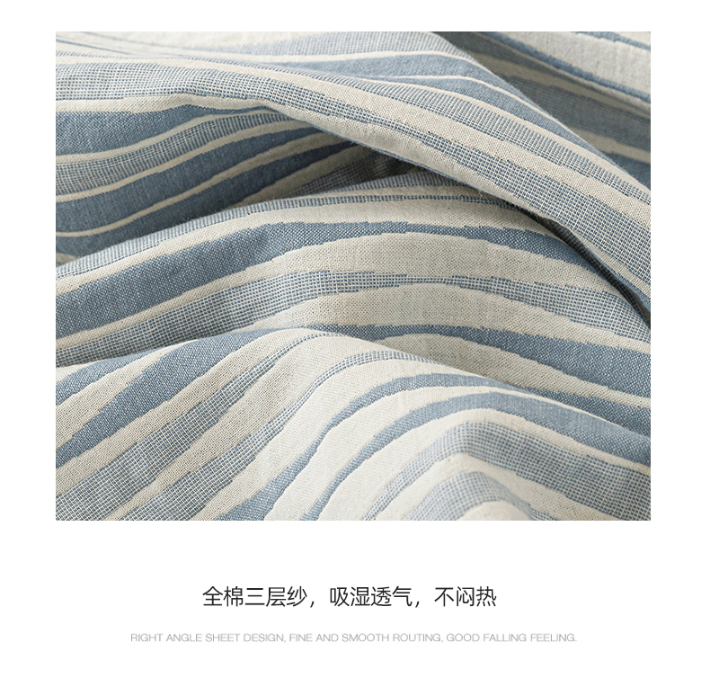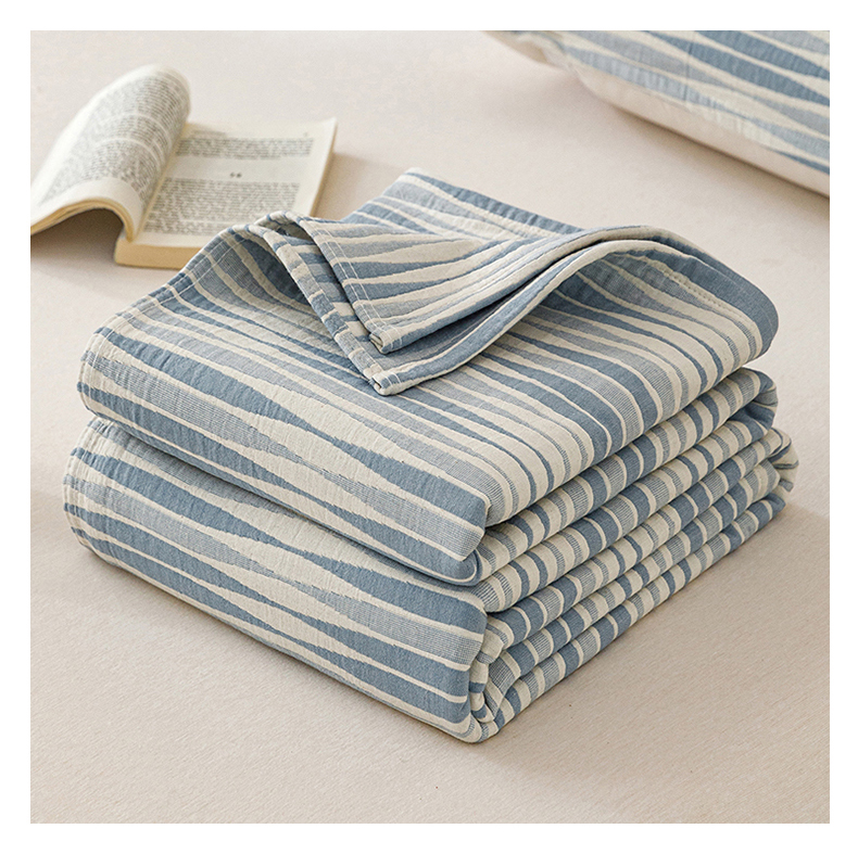 悦然毛巾被 2026新款条纹全棉纯棉色织三层纱毛巾被休闲盖毯毯子 竹影蓝
