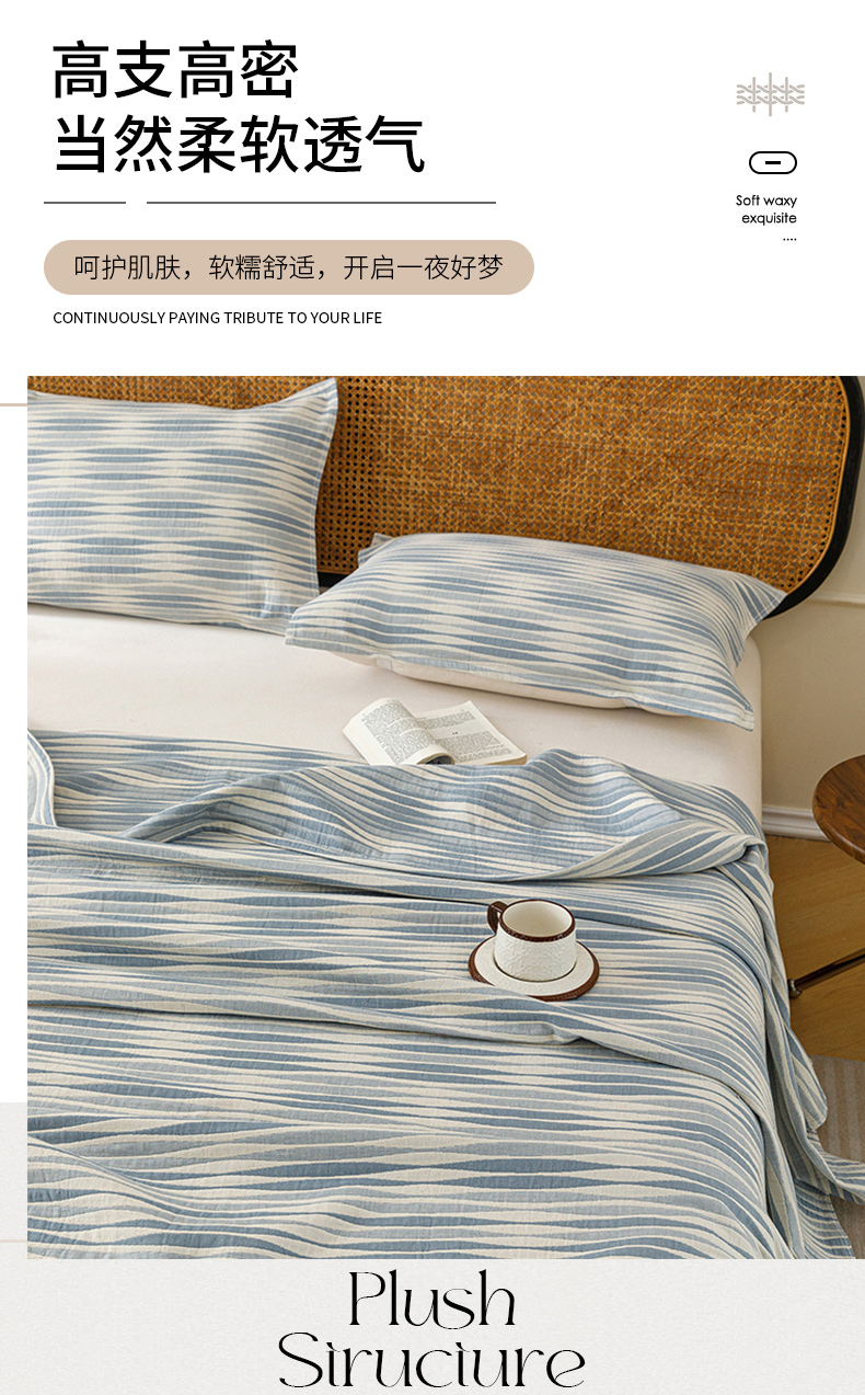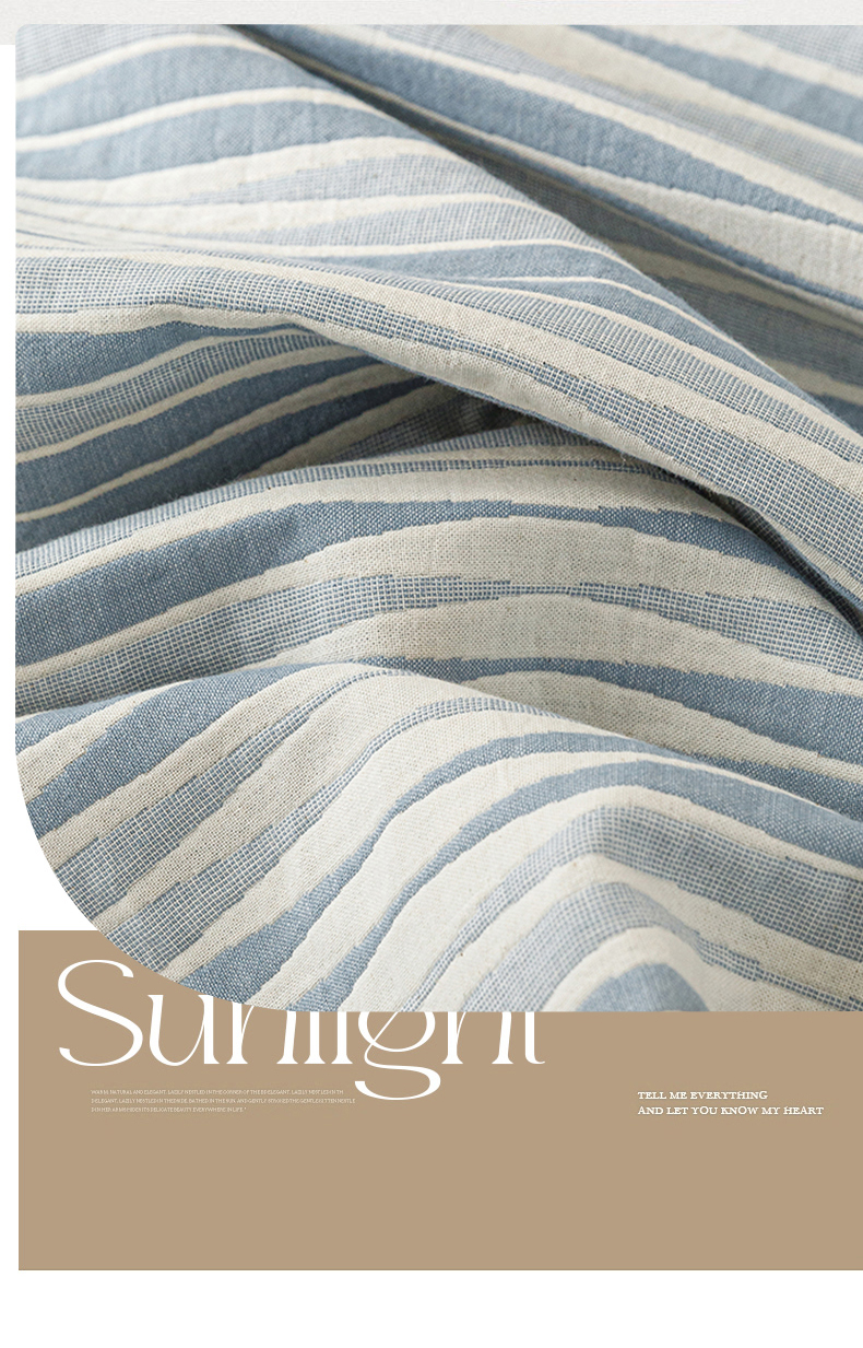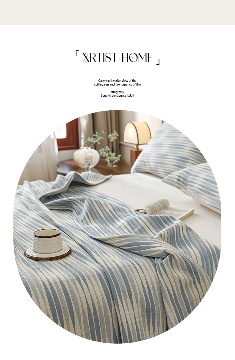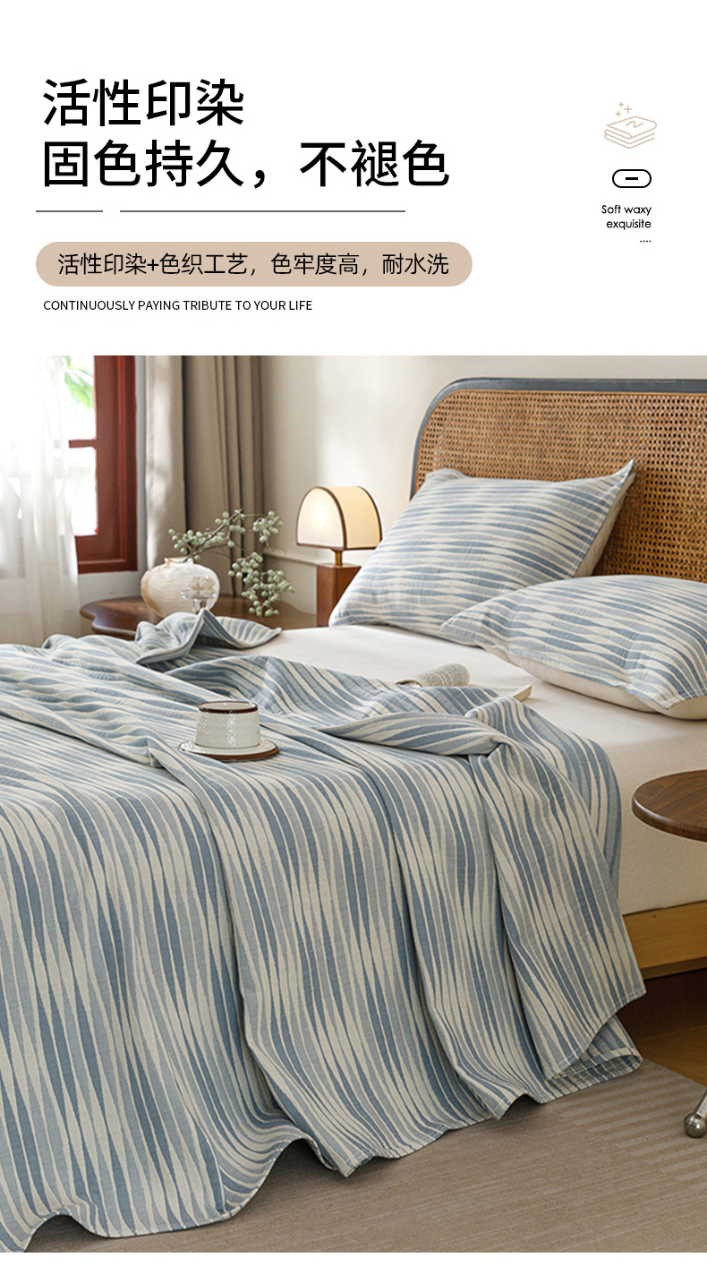 悦然毛巾被 2026新款条纹全棉纯棉色织三层纱毛巾被休闲盖毯毯子 竹影蓝