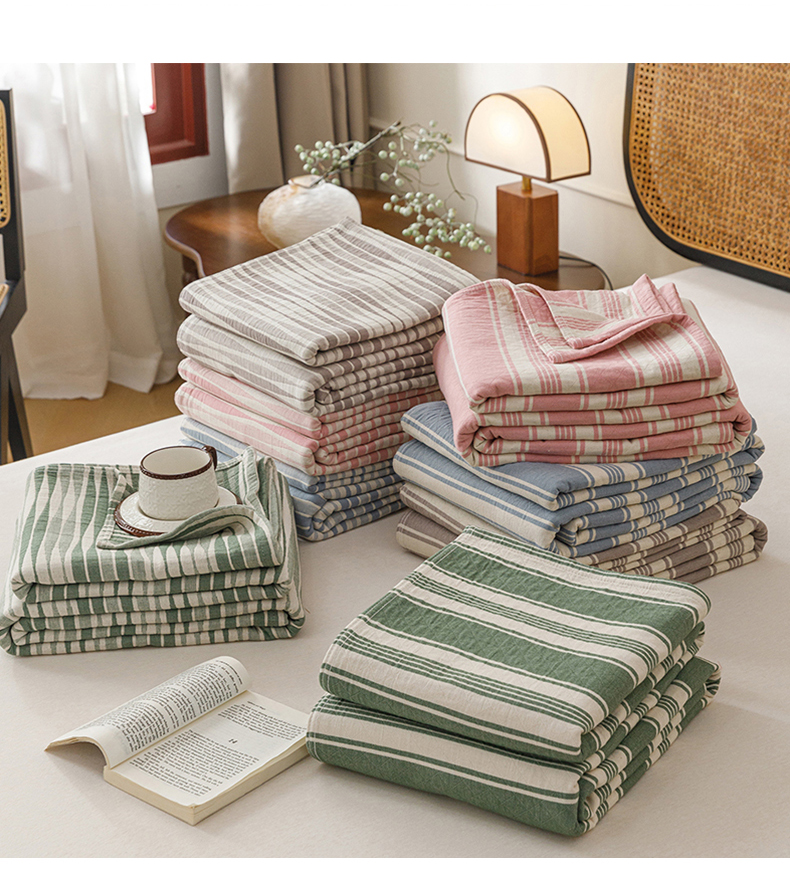 (总)悦然毛巾被 2026新款条纹全棉纯棉色织三层纱毛巾被休闲盖毯毯子,闲夏粉,闲夏灰,闲夏蓝,闲夏绿,竹影粉,竹影灰,竹影蓝,竹影绿,组合图仅供展示不可下单