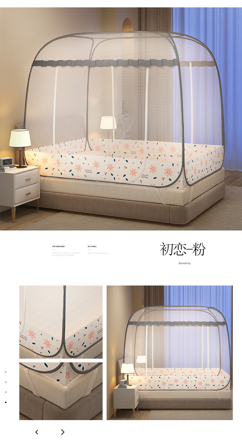 (总)青竹苑 2026新款免安装大顶花边款魔术蚊帐,初恋粉,初恋蓝,加密灰,加密蓝,条纹灰,条纹蓝