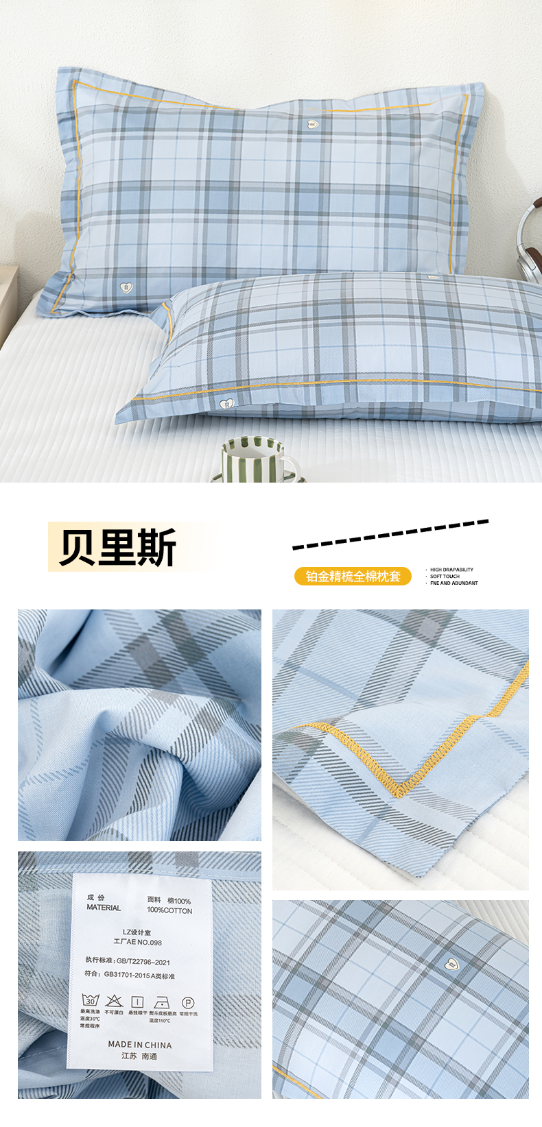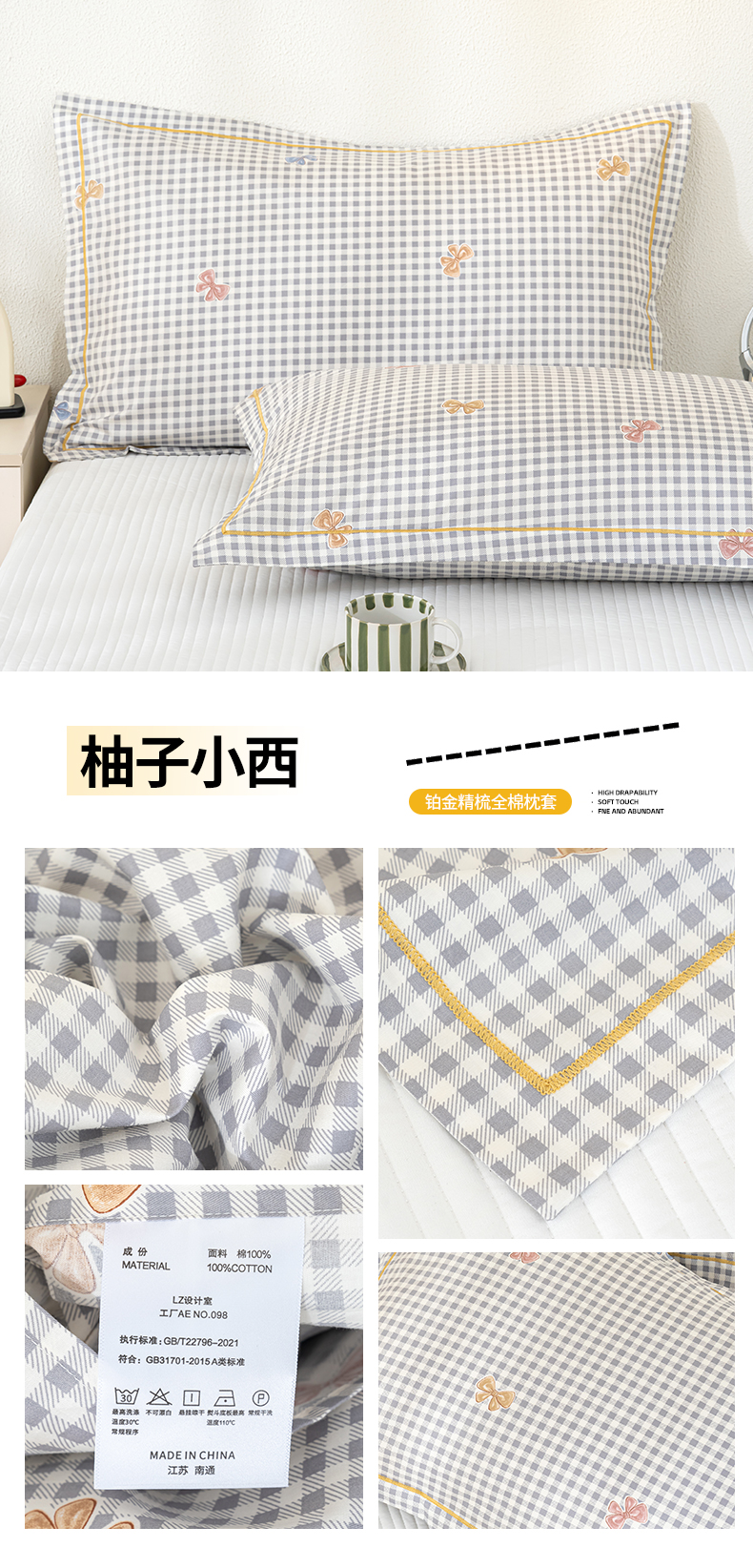 商品名称:(总)良佐生活 2026新款40支铂金精梳全棉一字绣枕套