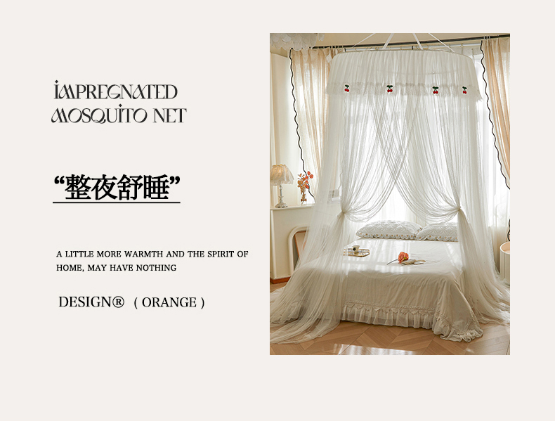 (总)雪姿家纺 2026新款刺绣花边落地宫廷外穿杆蚊帐-落地樱桃,刺绣花边樱桃-烟岚紫灰,刺绣花边樱桃-白色,刺绣花边樱桃-清爽茶绿,刺绣花边樱桃-温柔杏色,刺绣花边樱桃-温馨粉玉