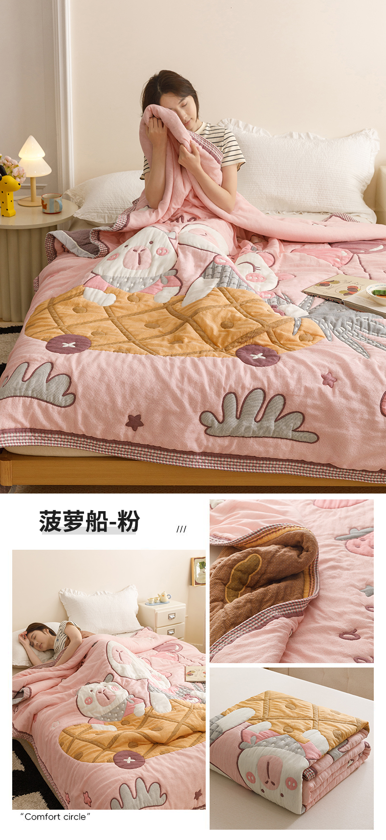 朴尔家纺-毛巾被 2026新品纯棉云朵棉卡通独版十层加厚纱布泡芙被毛巾被 粉色条纹伙伴