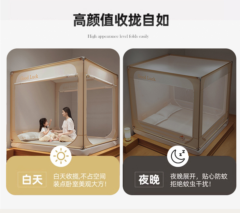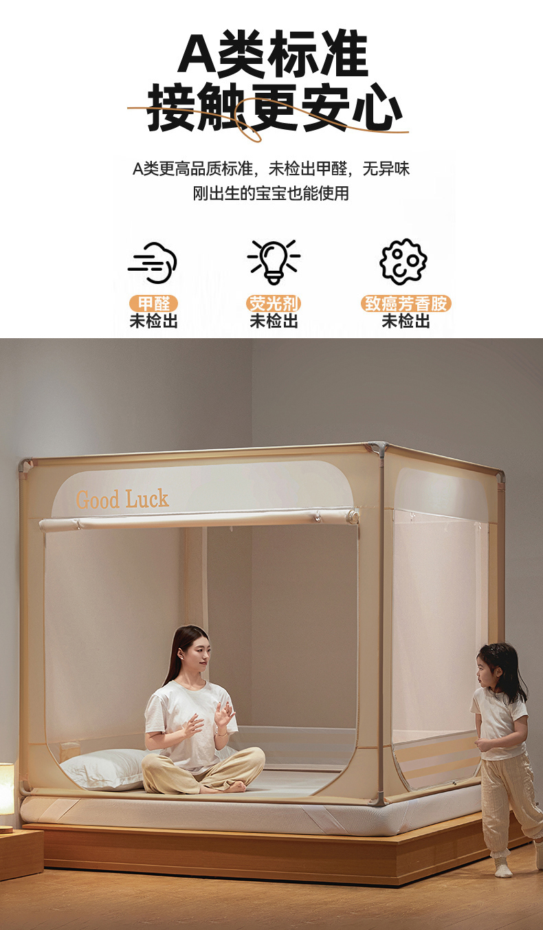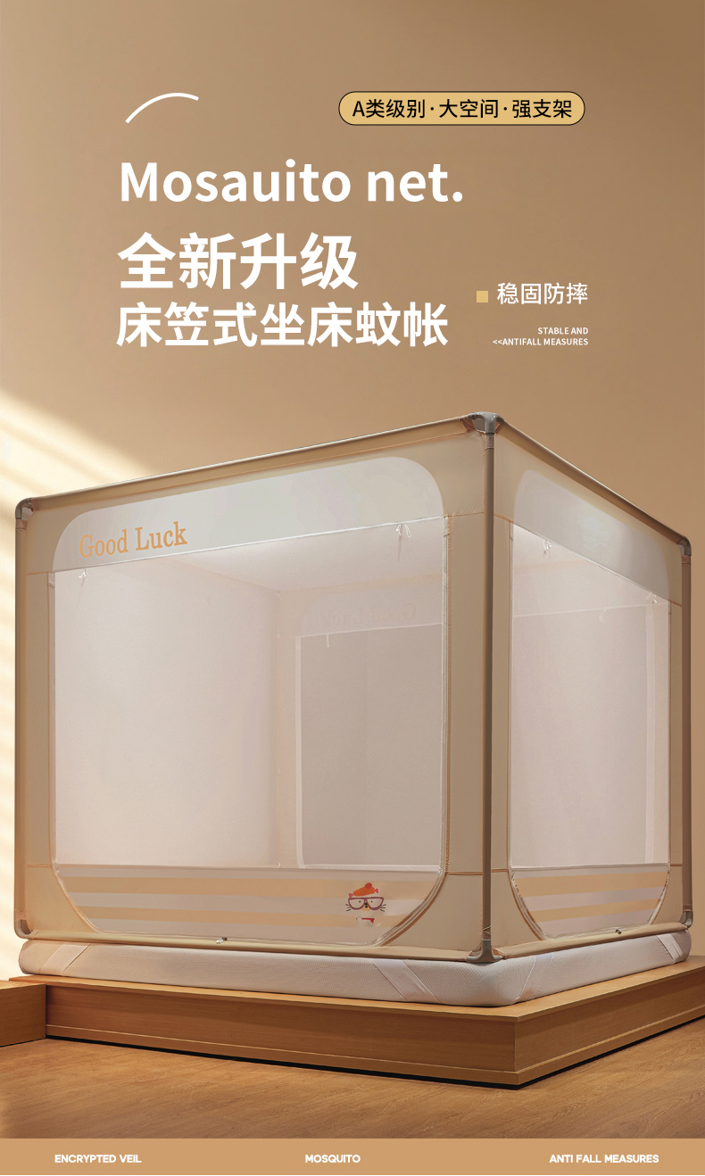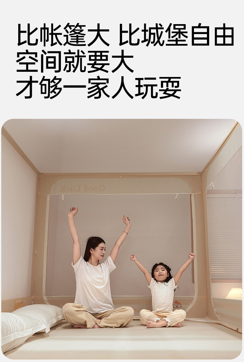 当前位置: 91家纺网 > 商品网购 > 床上用品 > 蚊帐 > 坐床式蚊帐 > 雪姿家纺 2026新款外穿杆三开u型门回底床笠款防摔蚊帐-星梦 星梦-浅米色