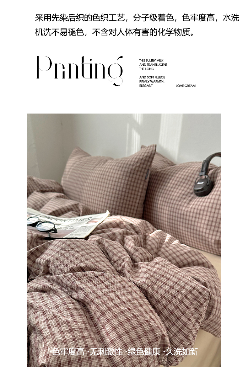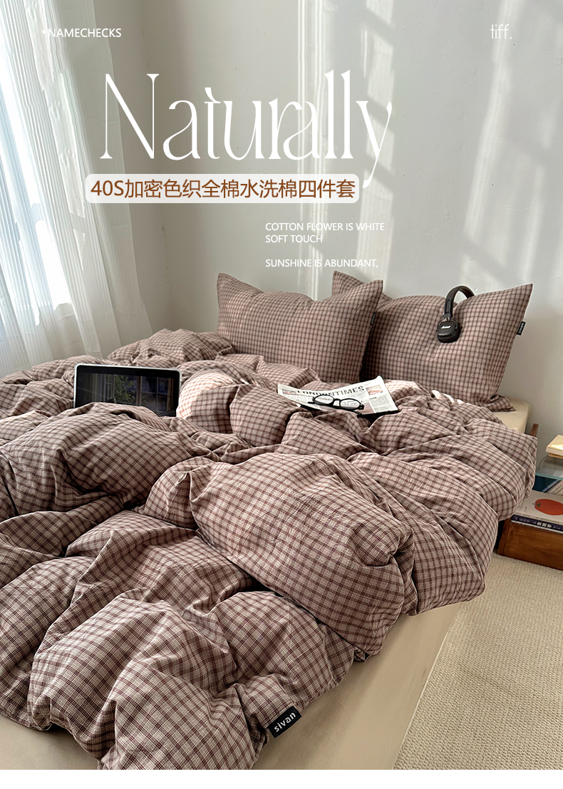 当前位置: 91家纺网 > 商品网购 > 床品套件 > 四件套 > 全棉普通四件套 > XIWEN-希文家纺 2026春夏新款40支全棉纯棉色织水洗棉四件套 空野-咖