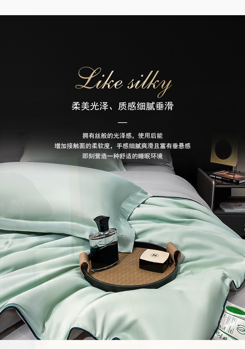 • 91家纺网 家纺一手货源 找家纺 绒棉世家 2026新款100%莱赛尔纯色天丝面料夏被四件套终版 绅士灰