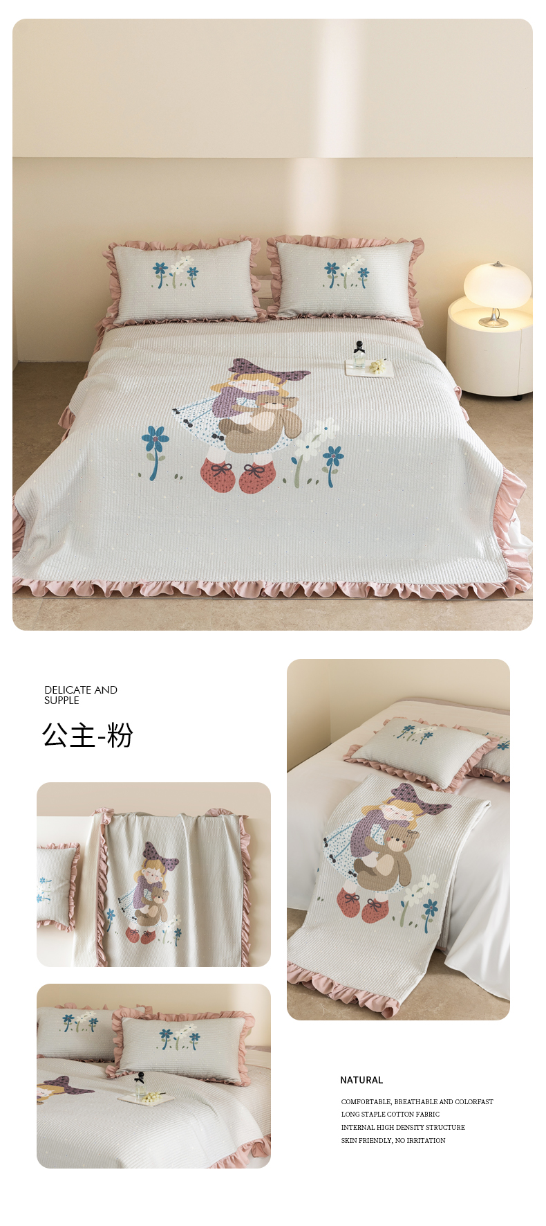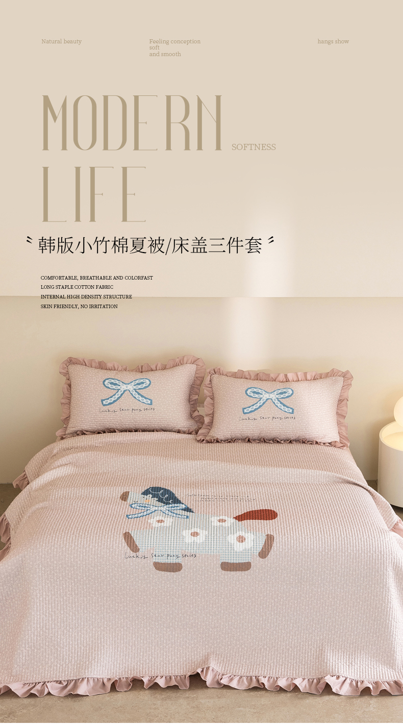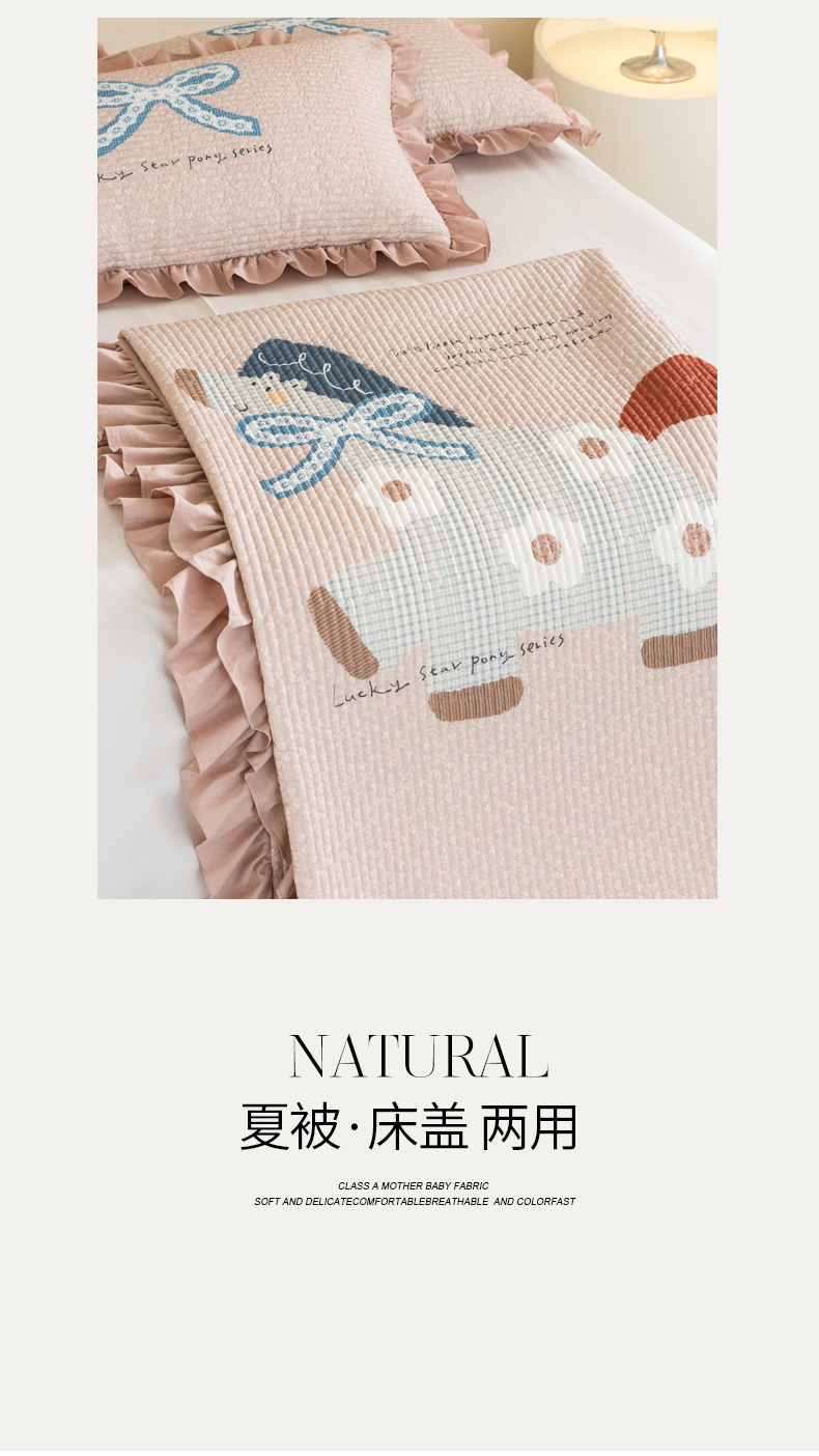 商品名称:立奥被业 2026新品古法水洗棉夏被仿棉大版床盖防棉大版夏被 小马粉