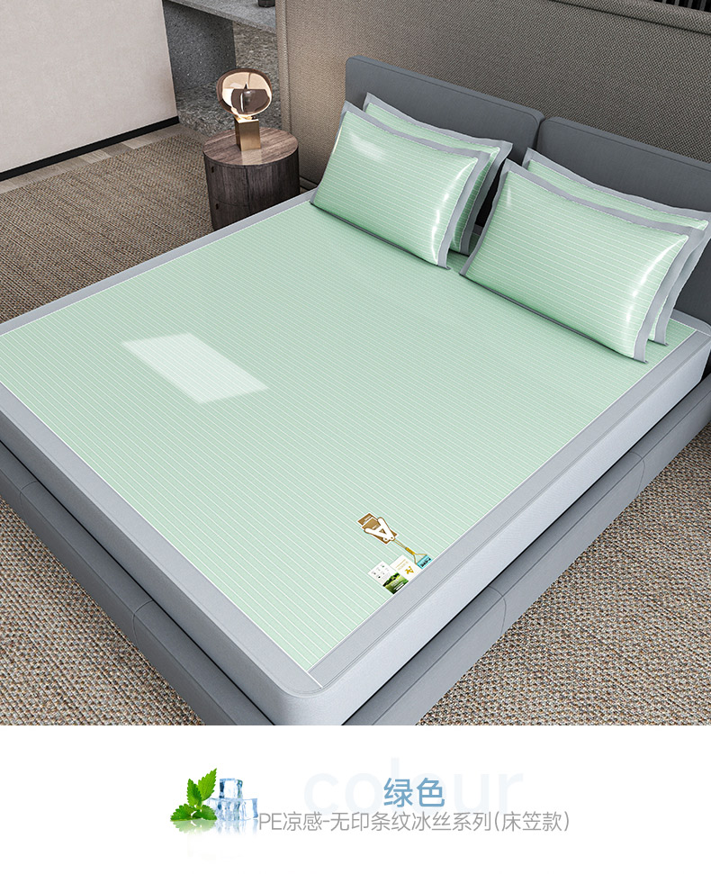 (总)2023新款超精密冰丝席-小斜纹系列-床笠款藤席凉席竹席,粉色,蓝色,绿色,银灰