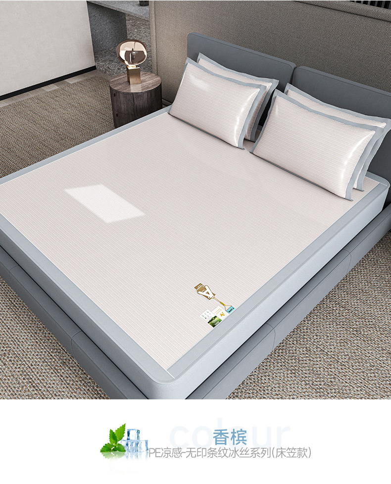 商品名称:小牛席业 2026新款PE凉感纤维无印风纯色凉感冰丝席凉席席子(床笠款) 香槟