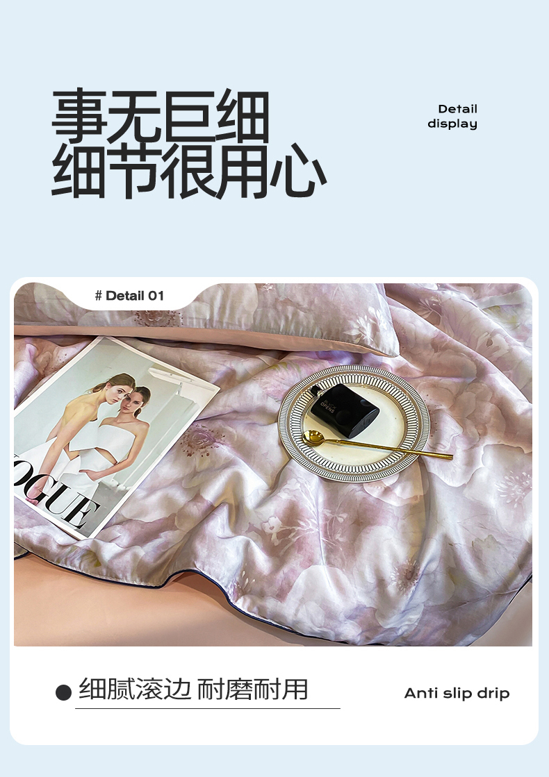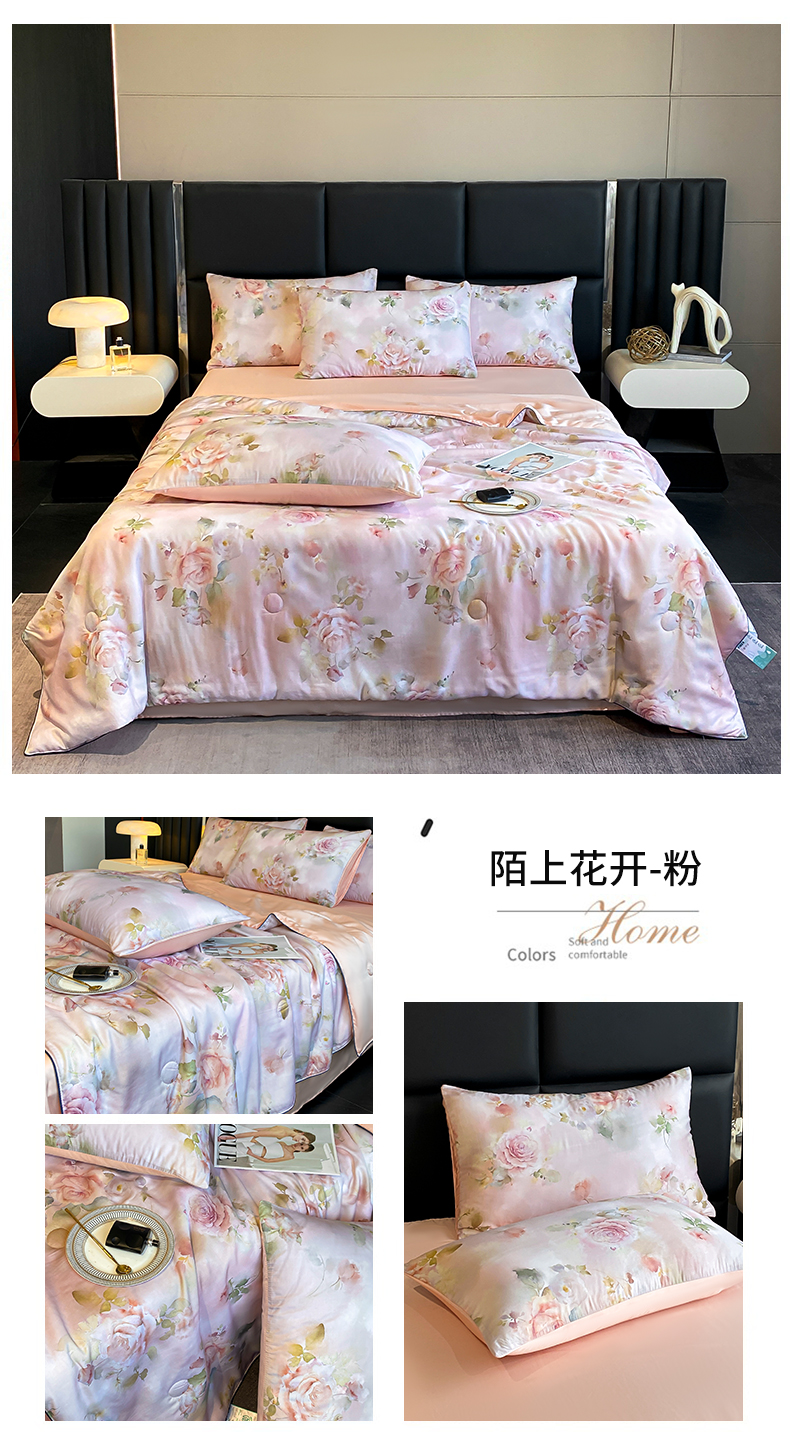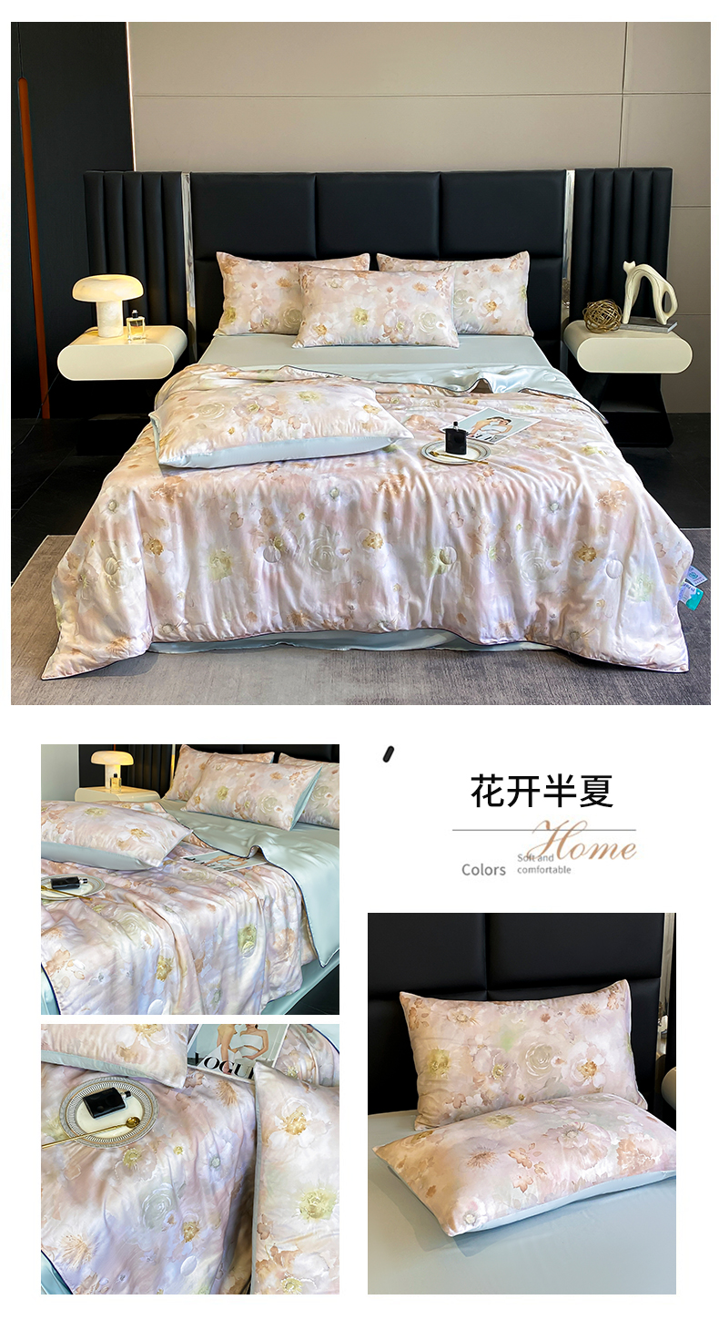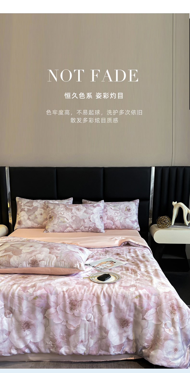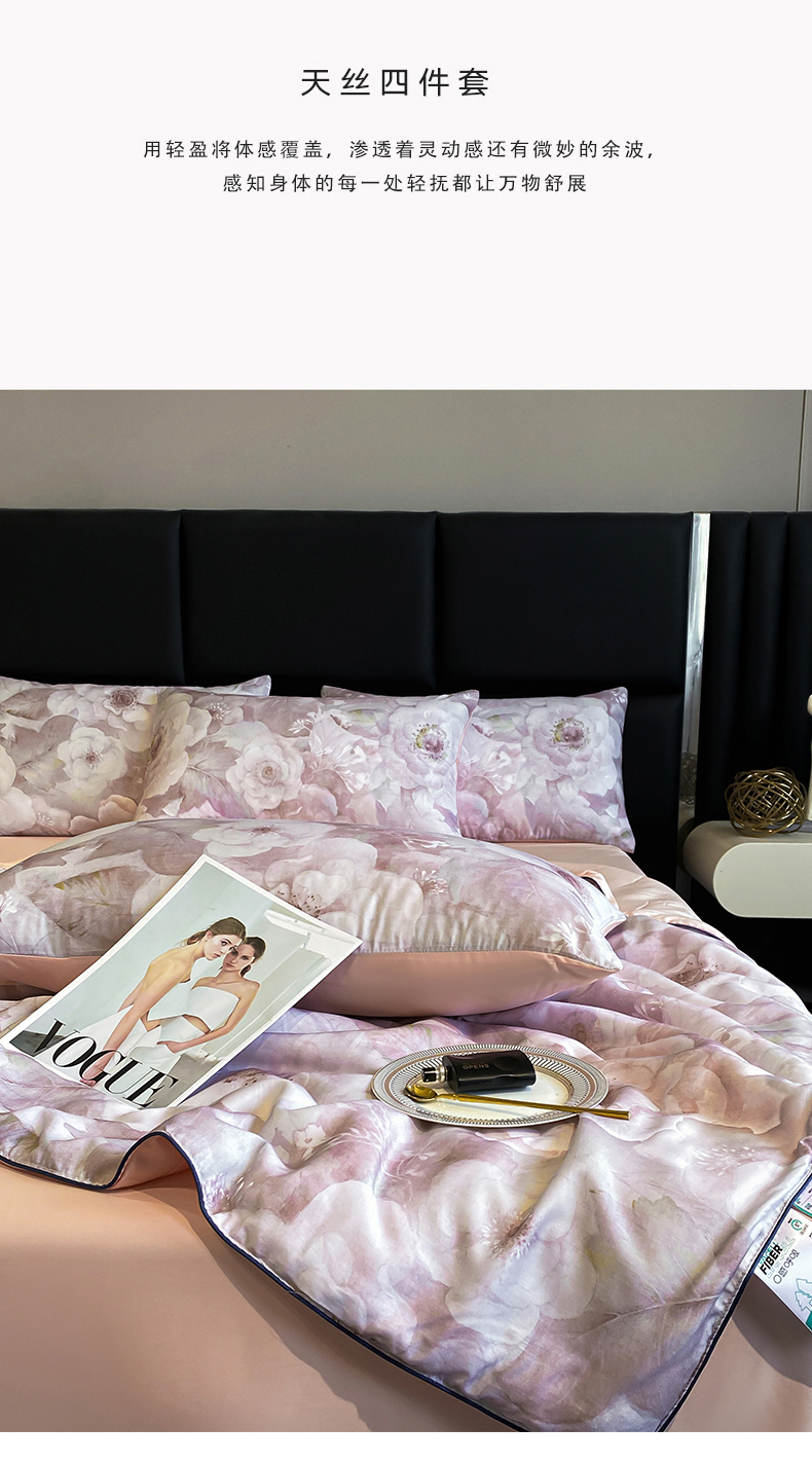 商品名称:绒棉世家 2026新款100%莱赛尔天丝面料数码印花天丝夏被四件套 诺曼花园