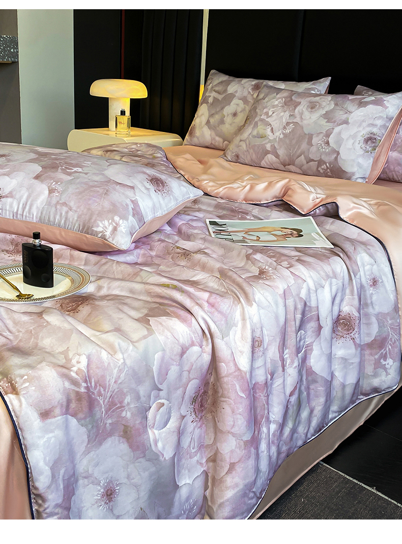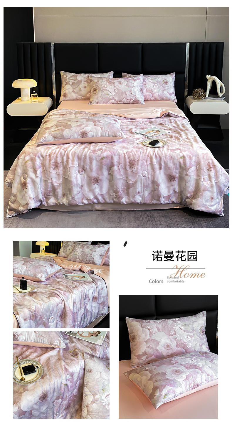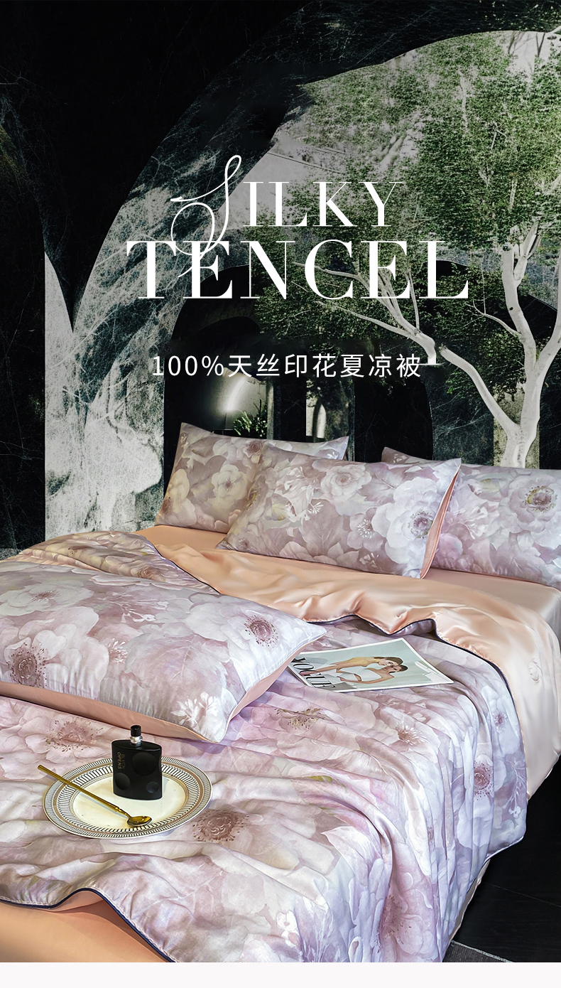 绒棉世家 2026新款100%莱赛尔天丝面料数码印花天丝夏被四件套 诺曼花园