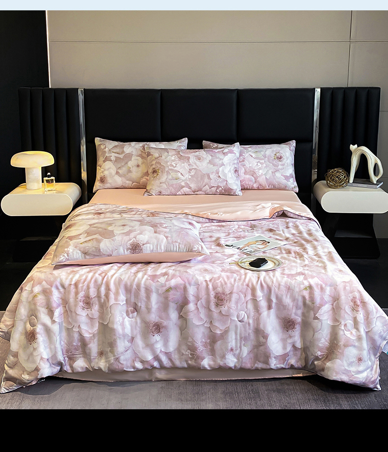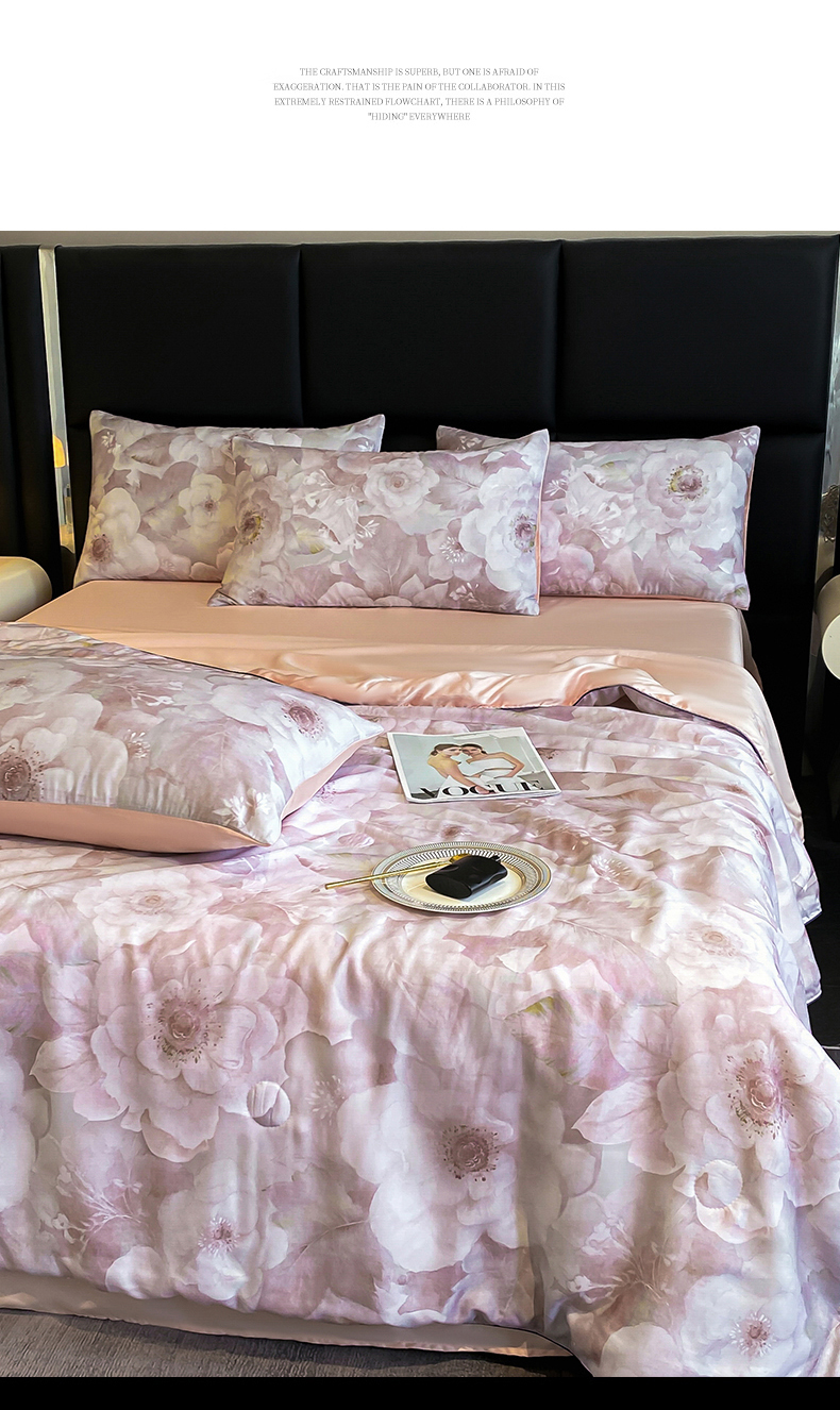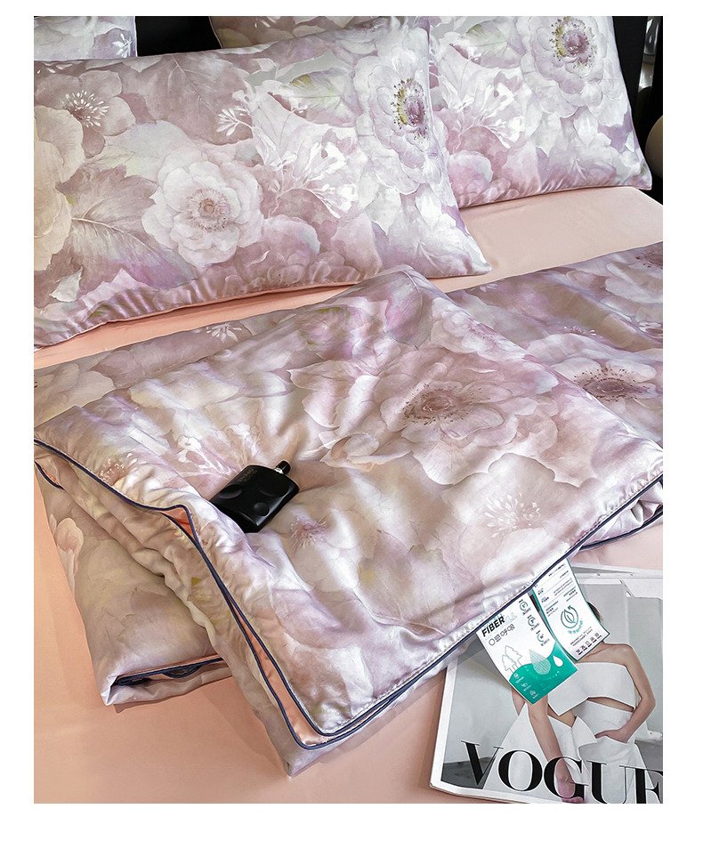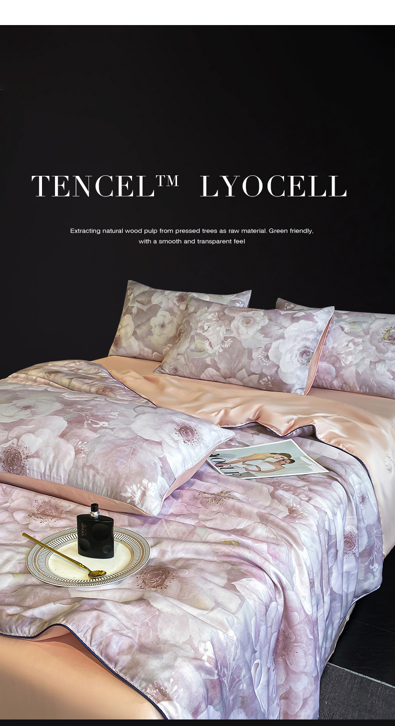 绒棉世家 2026新款100%莱赛尔天丝面料数码印花天丝夏被四件套 诺曼花园