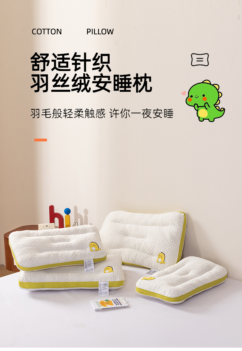 商品名称:(总)红柳枕芯 2026新款舒睡针织羽丝绒安睡儿童枕小恐龙枕头枕芯