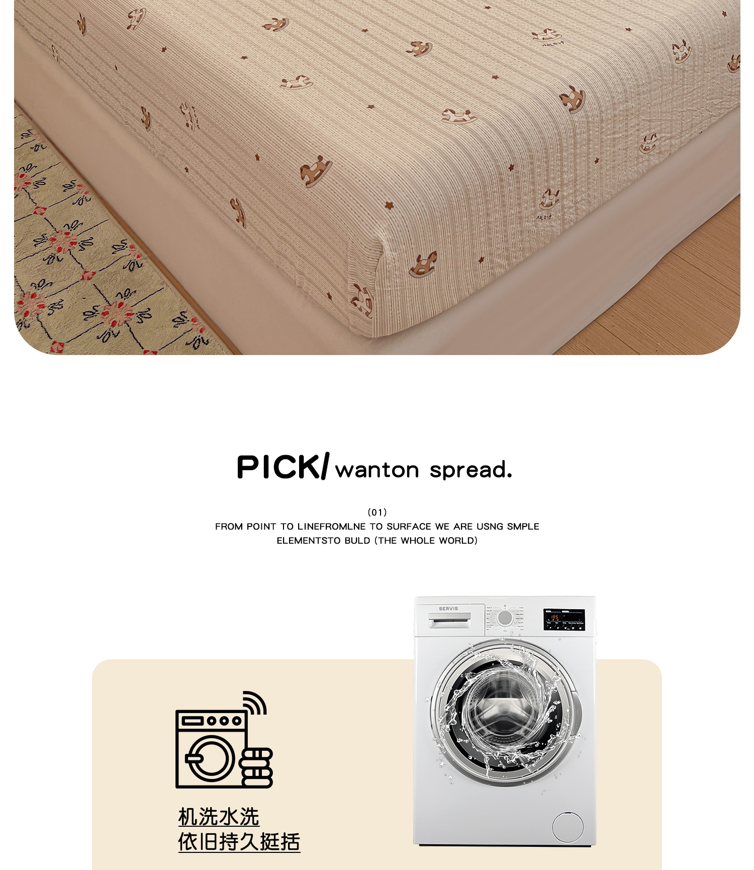 • 91家纺网 家纺一手货源 找家纺 小桃姐家纺 2025新款超柔印花云感泡芙双层纱床笠单件床笠二三件套 小木马