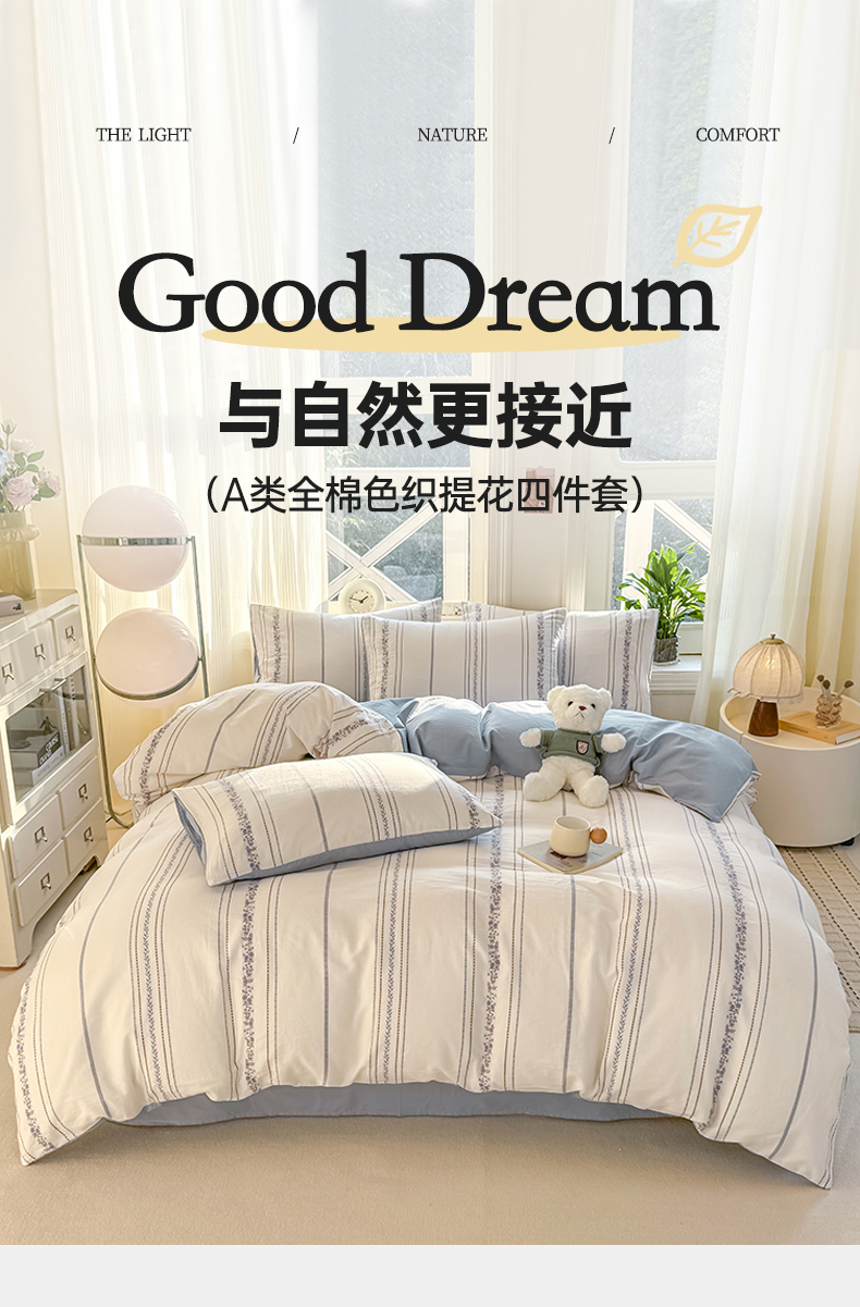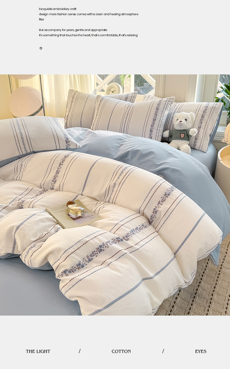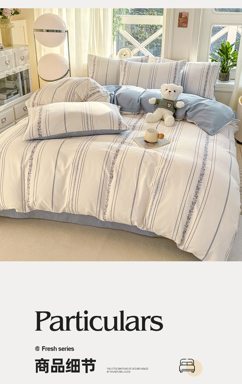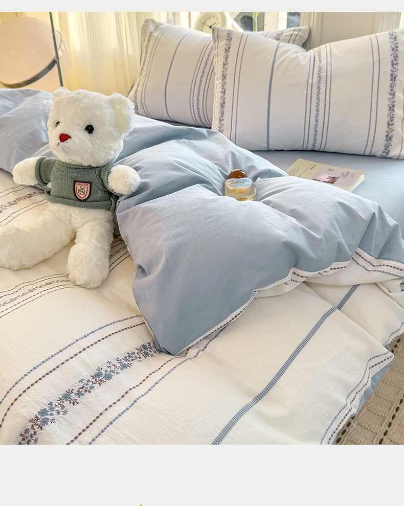 当前位置: 91家纺网 > 商品网购 > 床品套件 > 四件套 > 全棉普通四件套 > 灰鲸 2026新款A类全棉纯棉色织提花四件套 罗兰-蓝