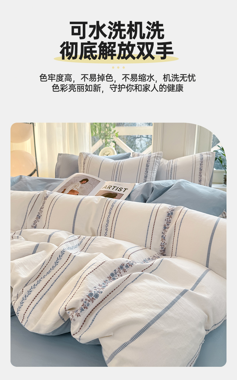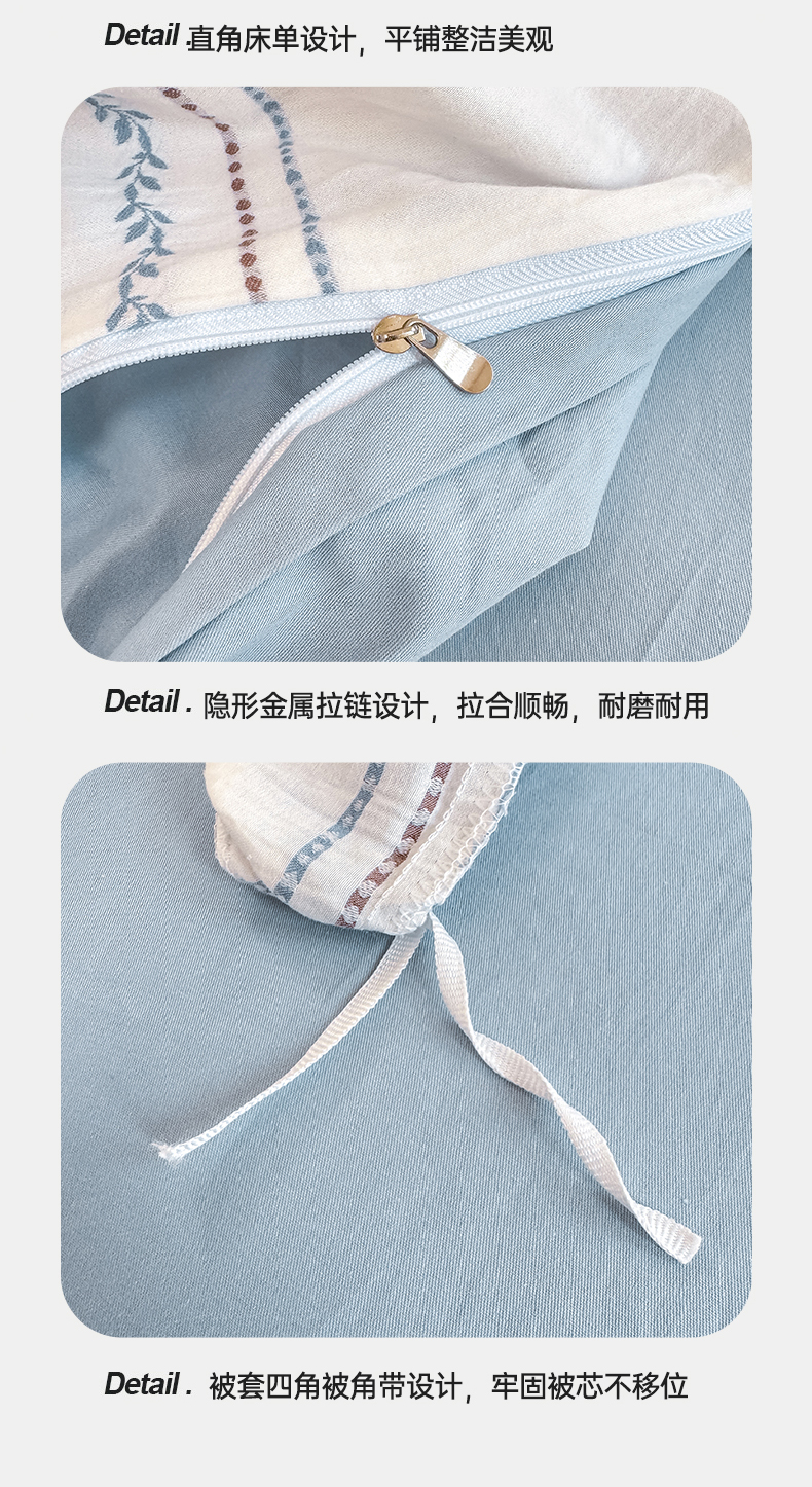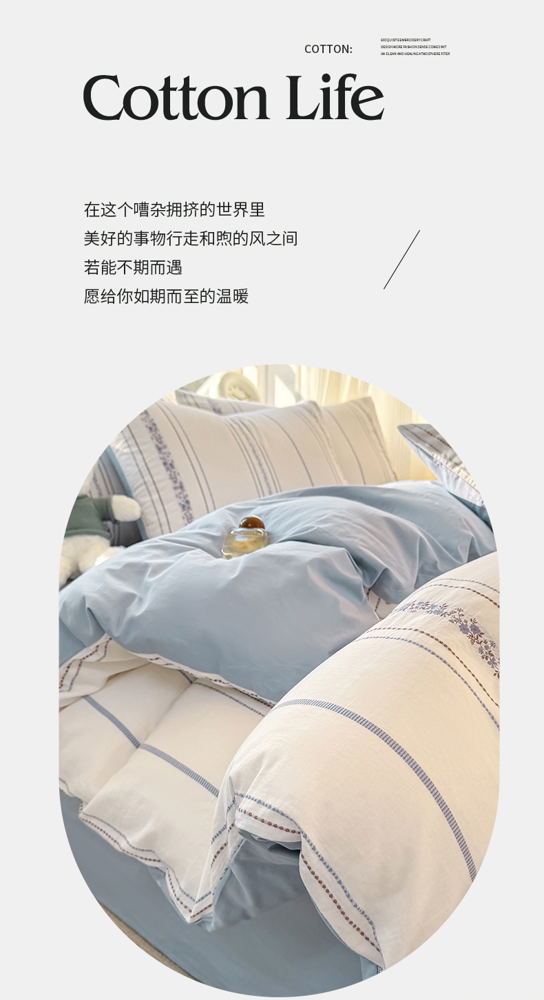 当前位置: 91家纺网 > 商品网购 > 床品套件 > 四件套 > 全棉普通四件套 > 灰鲸 2026新款A类全棉纯棉色织提花四件套 罗兰-蓝
