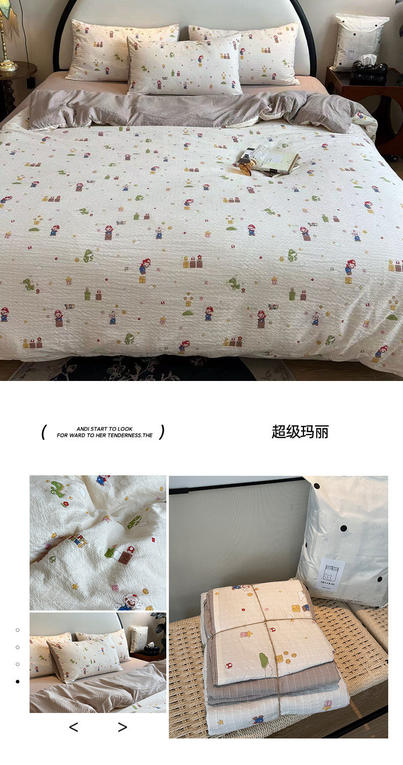 (总)美丽坊 2026新款爆款韩版泡泡纱四件套,爱丽丝,草莓啵啵,超级玛丽,杜若,朵蔓,哈基米,海派甜心,花间鹿,花汀,米亚,小蓝盯,星星人,组合图(仅供展示不可下单)