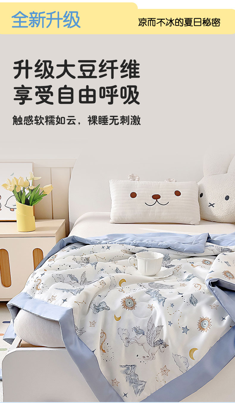商品名称:御棉坊 2026春夏A类天丝活性印染儿童大豆夏被宝宝夏凉被幼儿园午睡空调被薄被子 神域飞马