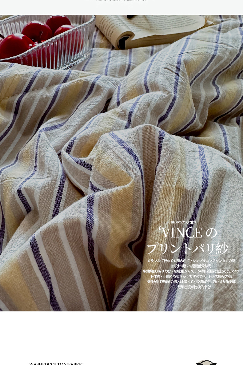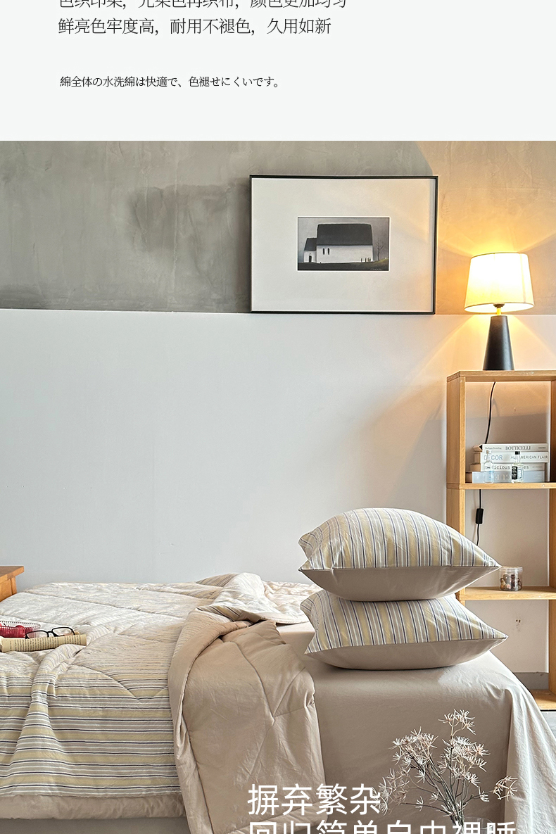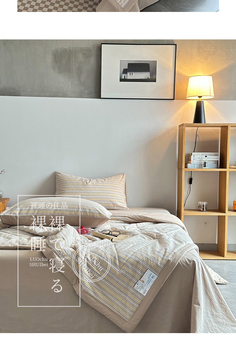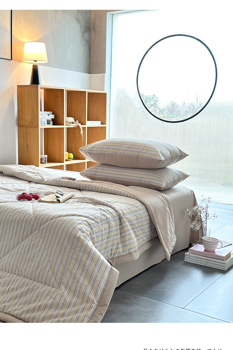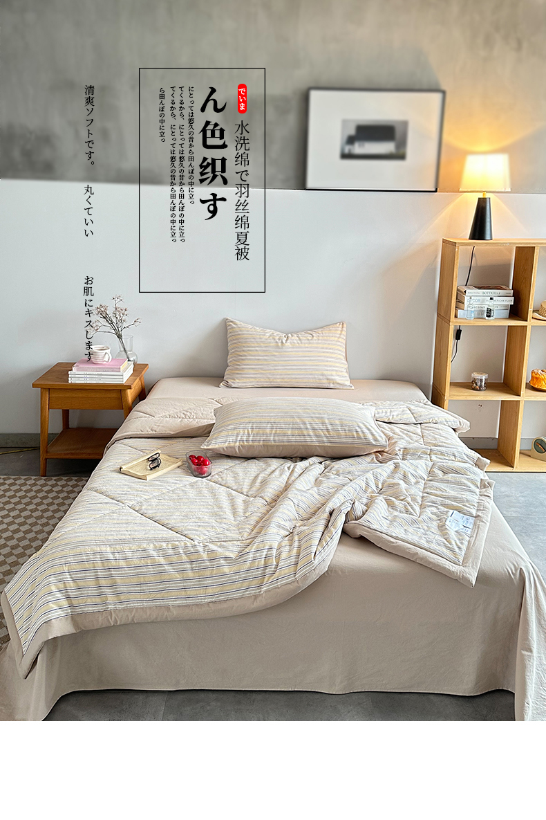 春皖家纺 2026新款全棉色织羽丝绒夏被-风格1 素雅-杏黄纹