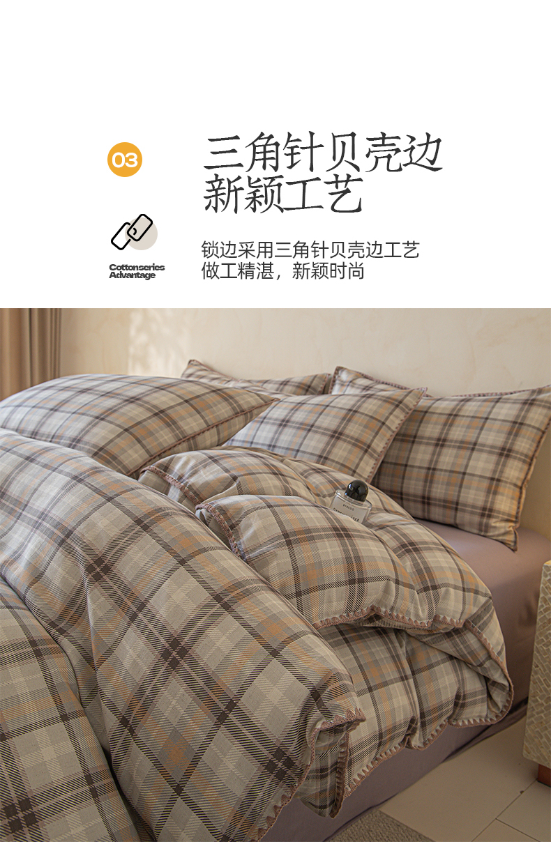 (总)桃子家居 2026新款A类纯棉色织水洗棉韩系奶油撞色格子三角针贝壳边工艺四件套系列,棉三角针-薄荷桃桃,棉三角针-海盐橘子,棉三角针-蓝雾桃格,棉三角针-蜜桃奶酥,棉三角针-奶黄青提,棉三角针-青柠薄荷,棉三角针-甜莓冰萃,棉三角针-紫雾芋泥