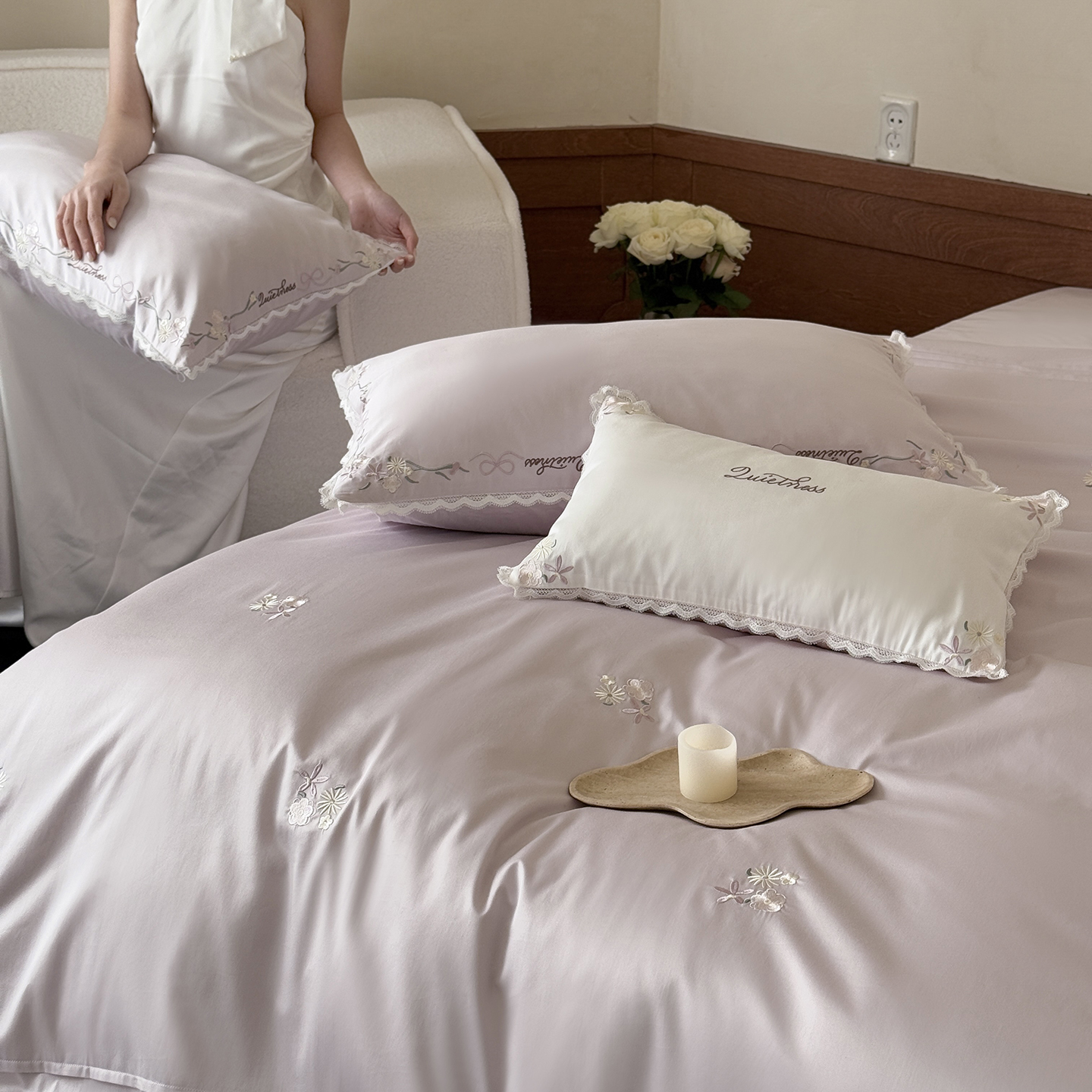 当前位置: 91家纺网 > 商品网购 > 床品套件 > 四件套 > 长绒棉四件套 > 鹿班家居 2026春季新品100S长绒棉精密刺绣系列四件套-少女花栈(标准会员-20元) 少女花栈-紫色