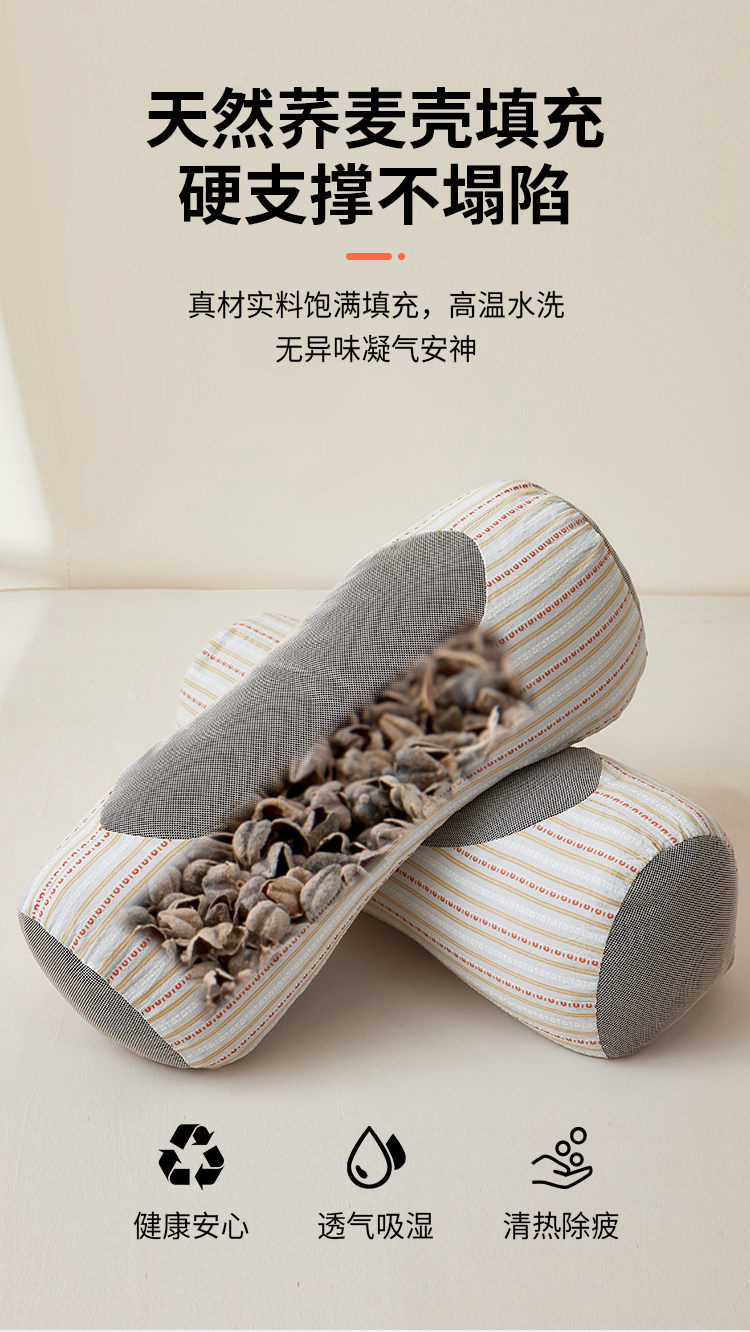 商品名称:(总)小桃姐家纺 2025新款全棉纯棉圆柱荞麦枕护颈椎元宝枕枕头枕芯