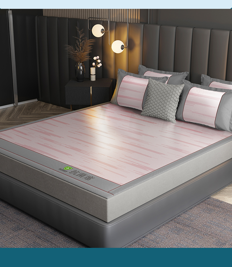 商品名称:小牛席业 2026新款A加厚款-可机洗抗菌提花冰丝席 抗菌席-色织粉色
