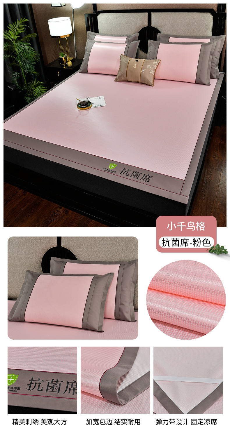 (总)2023新款超精密冰丝席-小斜纹系列-床笠款藤席凉席竹席,粉色,蓝色,绿色,银灰