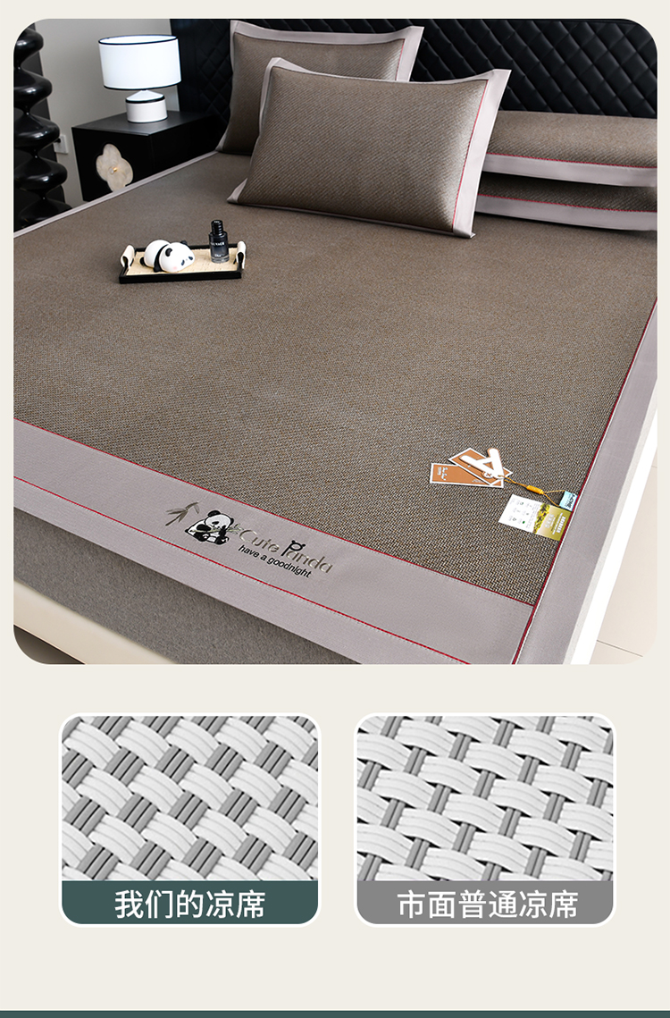 商品名称:小牛席业 2026新款3D刺绣印尼藤-熊猫刺绣款(10斤加厚) 咖啡