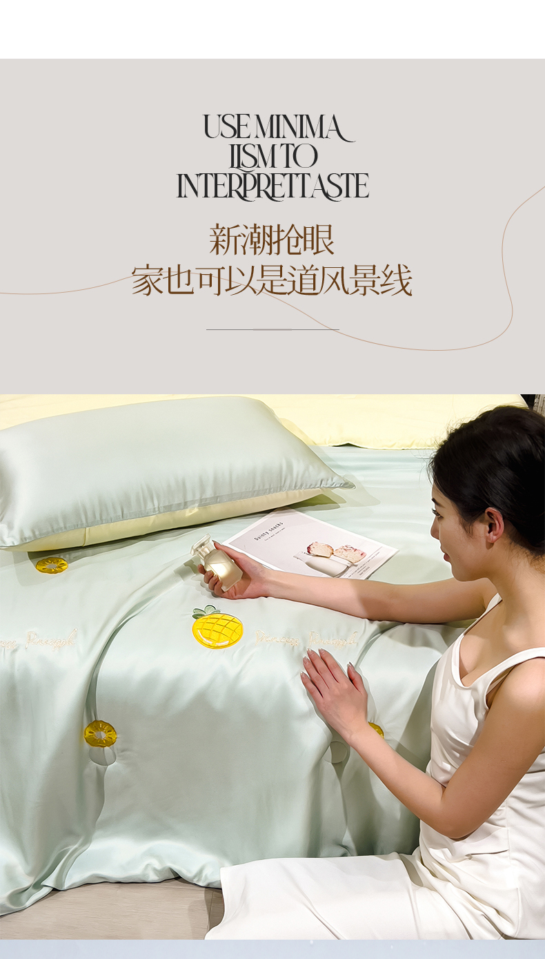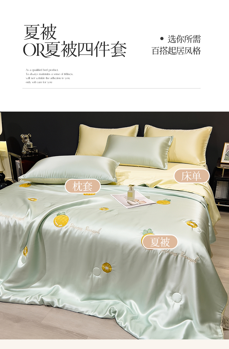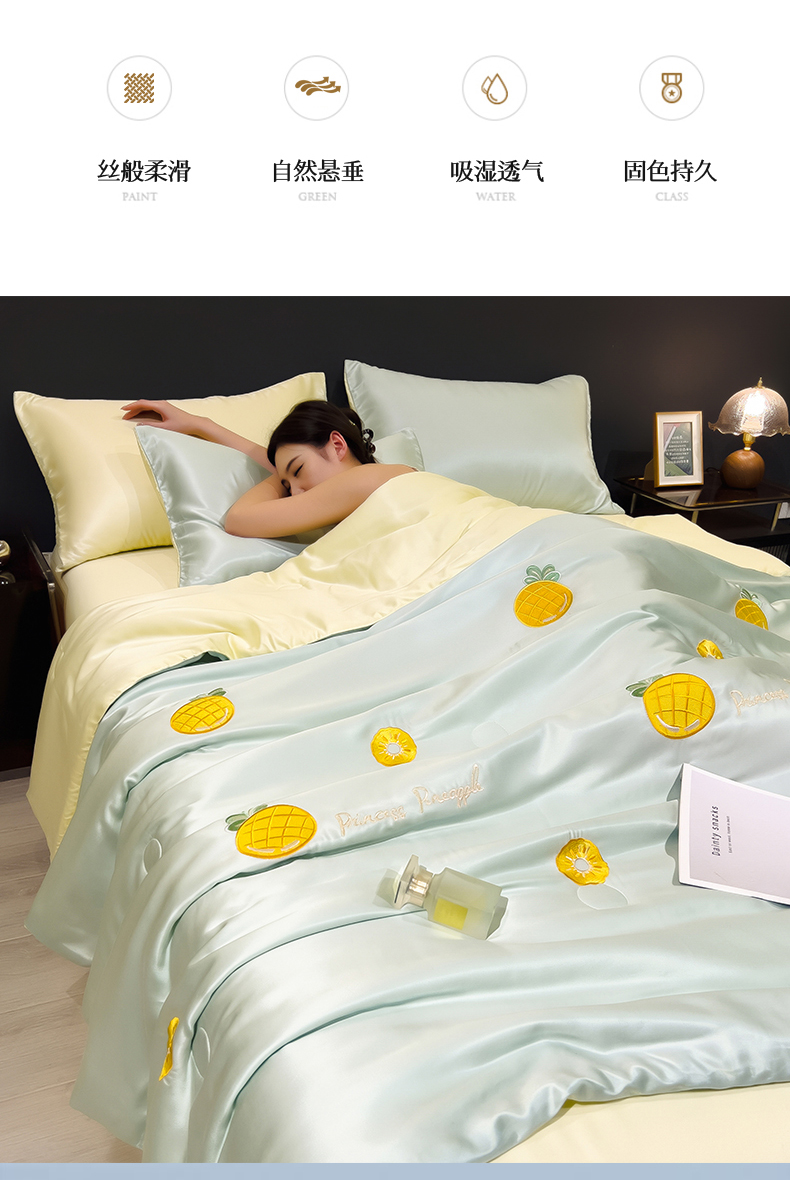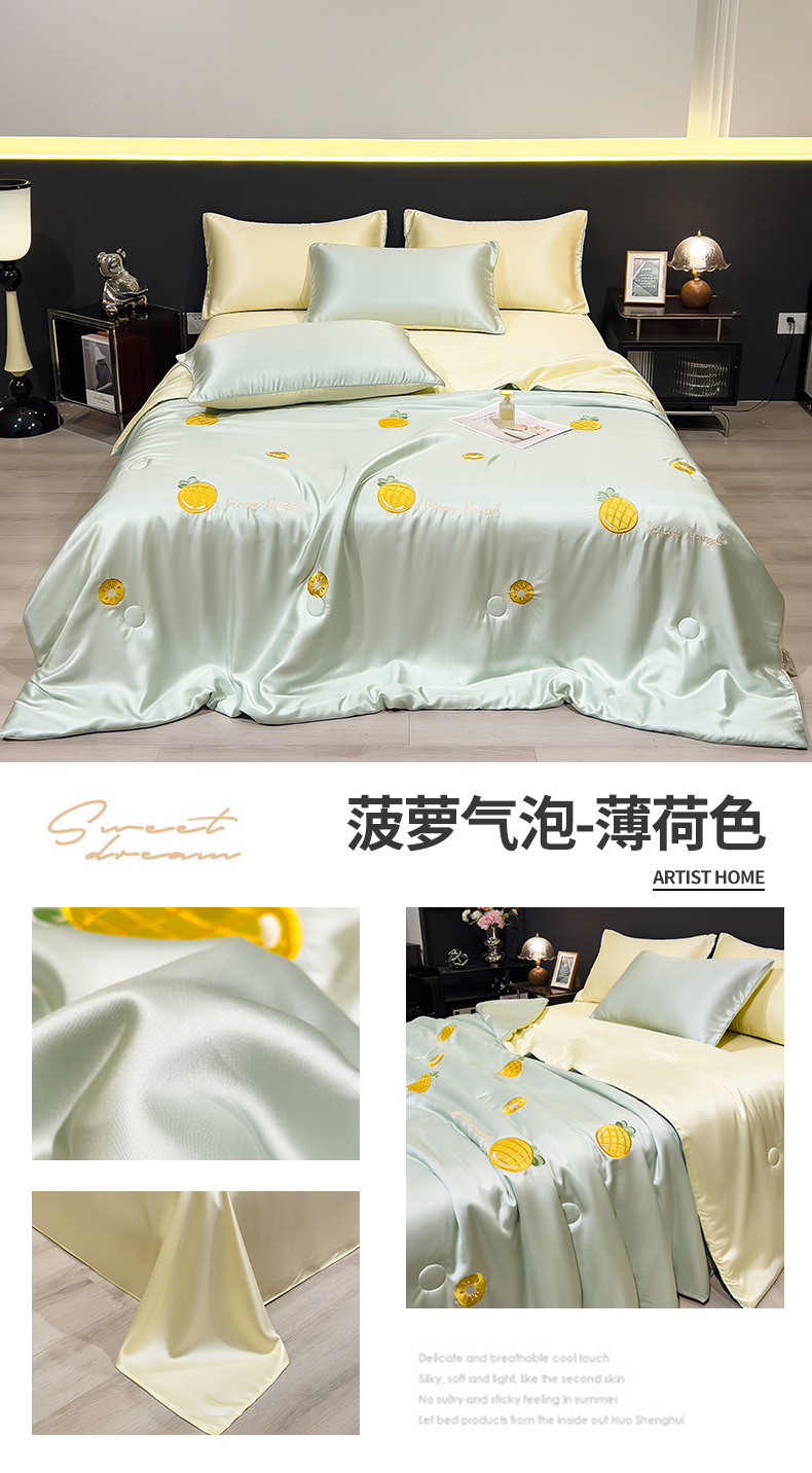 当前位置: 91家纺网 > 商品网购 > 被子 > 夏被 > 兄弟坊 2026新款水洗冰丝刺绣夏被夏凉被夏被四件套 菠萝气泡-薄荷色