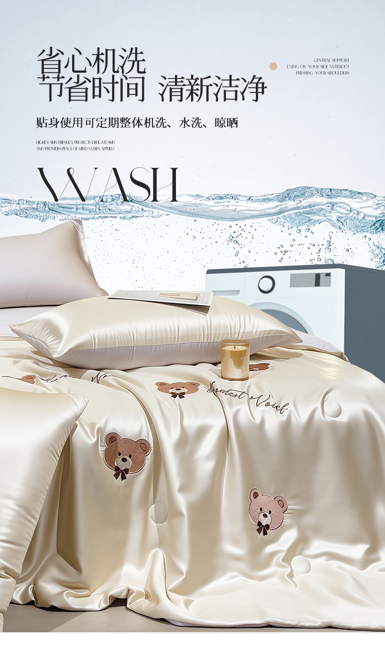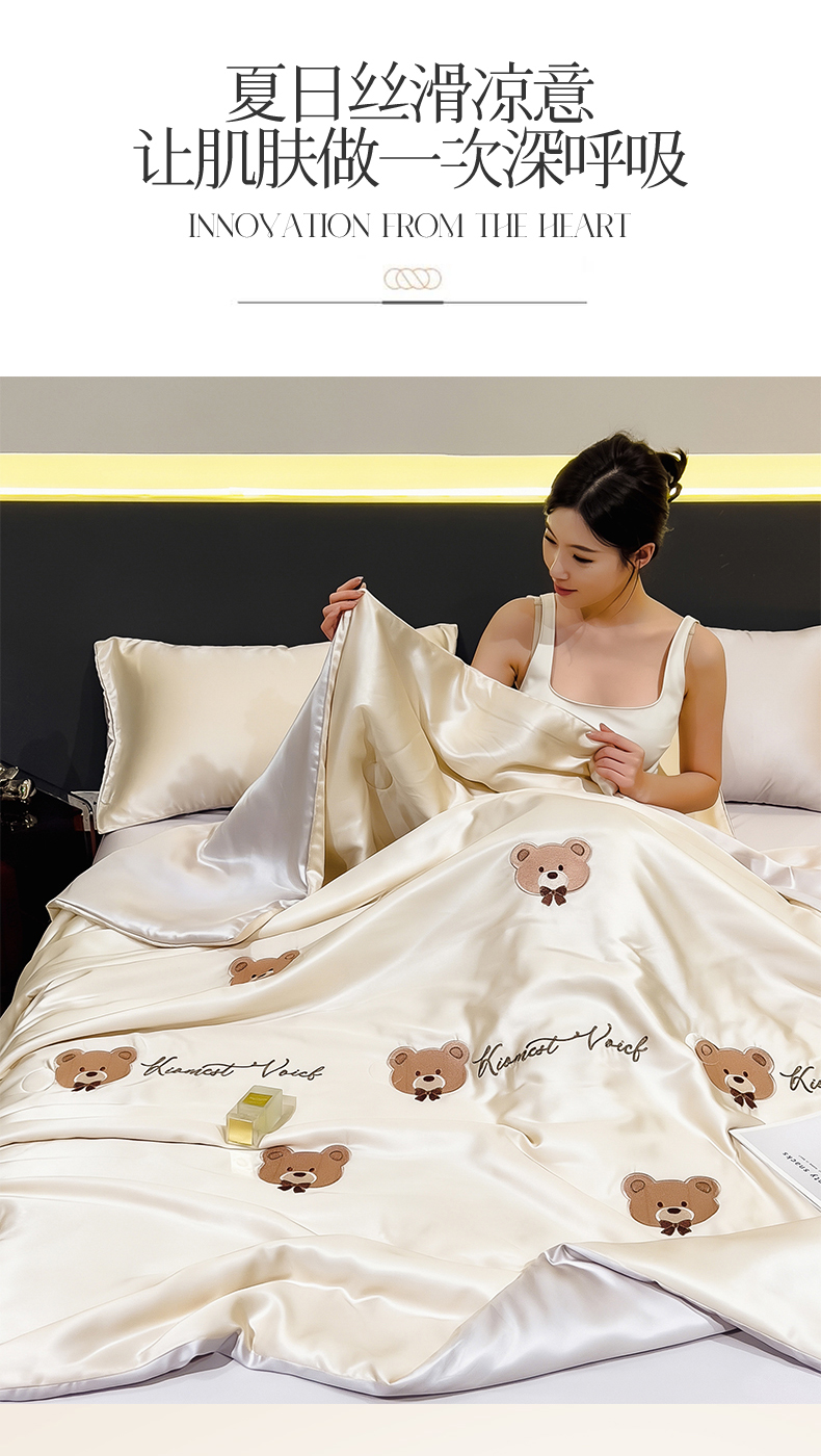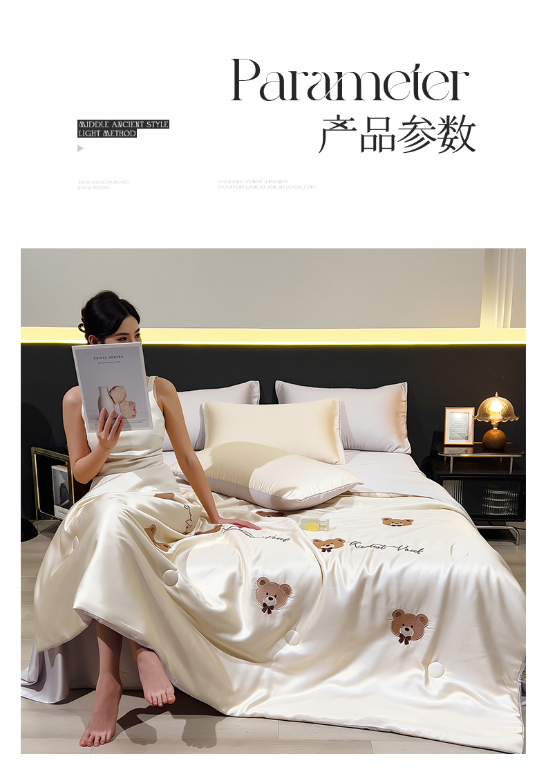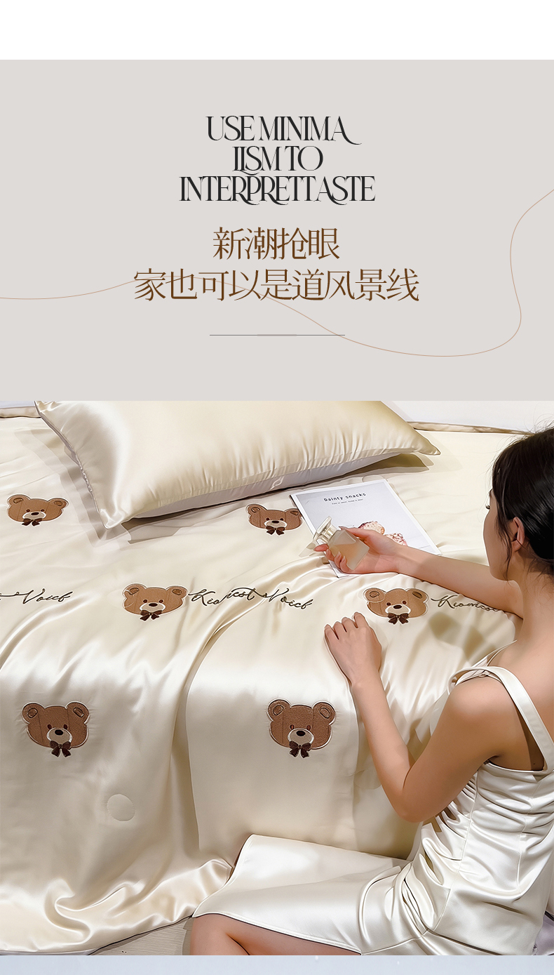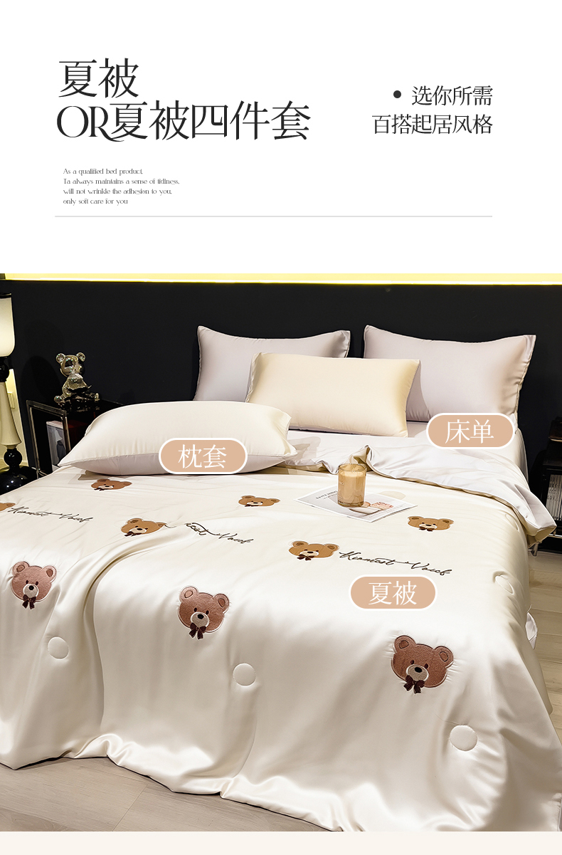 当前位置: 91家纺网 > 商品网购 > 被子 > 夏被 > 兄弟坊 2026新款水洗冰丝刺绣夏被夏凉被夏被四件套 绅土熊-柔黄