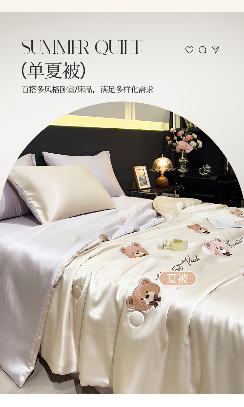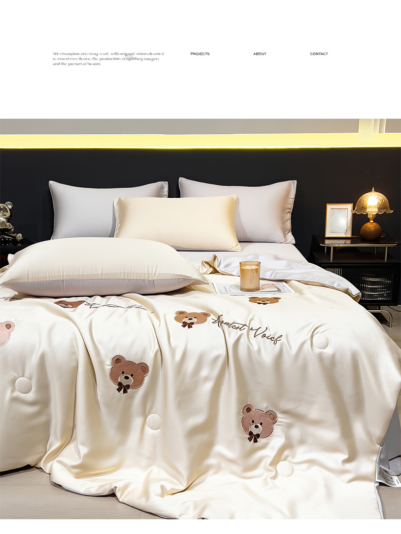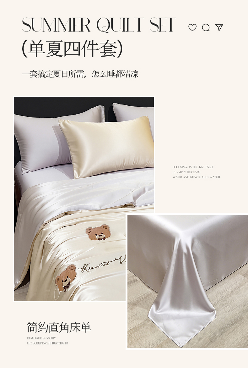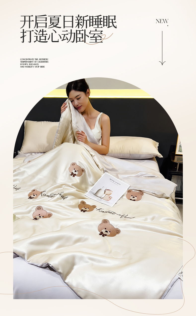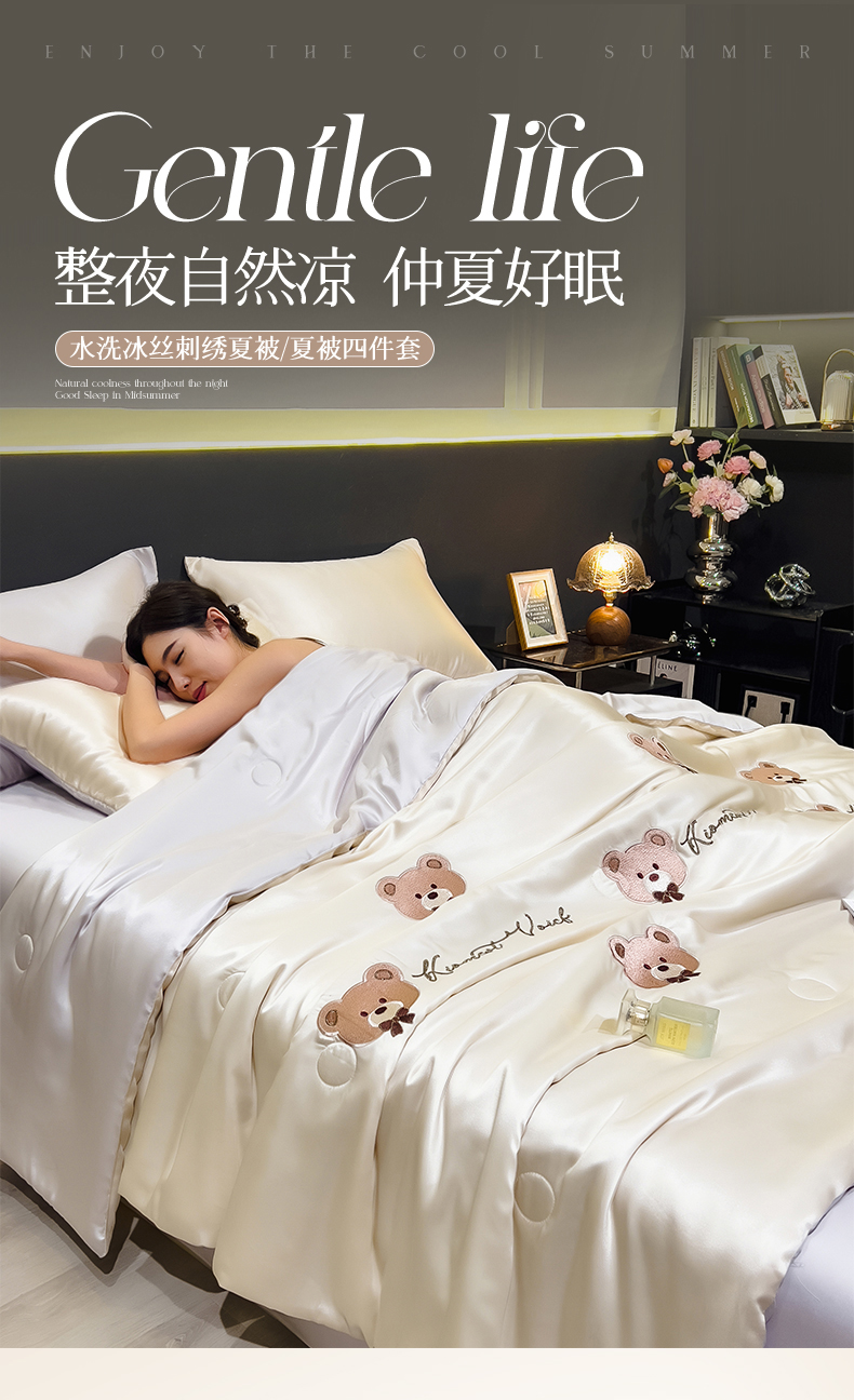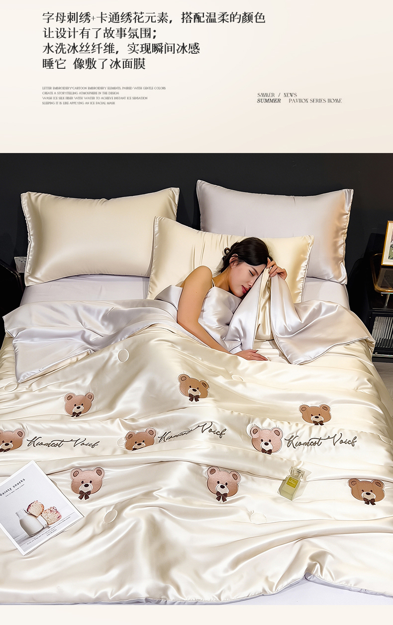 • 91家纺网 家纺一手货源 找家纺 兄弟坊 2026新款水洗冰丝刺绣夏被夏凉被夏被四件套 绅土熊-柔黄