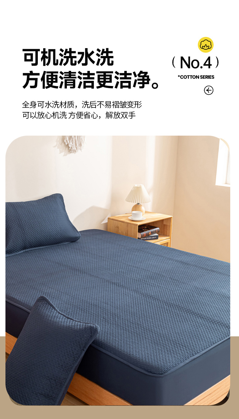 (总)宇淳国际 2026新款美人条A类水洗棉夹棉床笠三件套,白色,卡其,奶黄,浅灰,深灰,天蓝