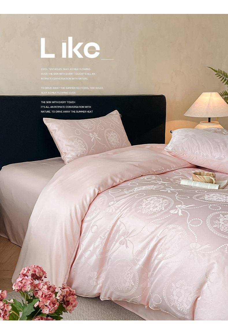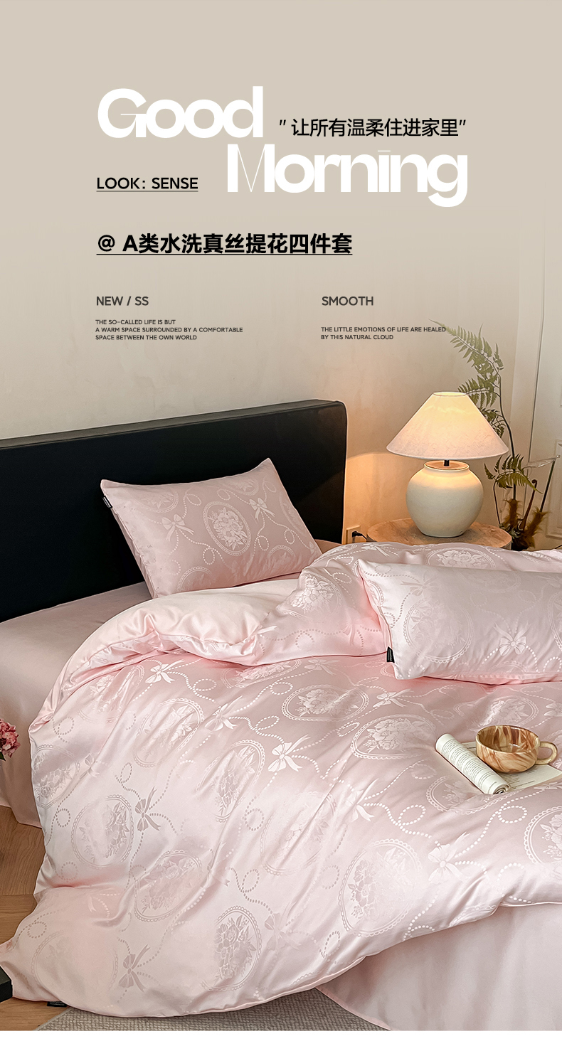 当前位置: 91家纺网 > 商品网购 > 床品套件 > 四件套 > 水洗真丝四件套 > 米彩家纺 2026新款A类水洗真丝天丝亮丝提花四件套 叶影香槟