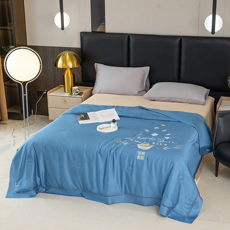 商品名称:太阳羽家纺 2026新款40s冰蚕科技天丝镂空夏被绣花夏凉被空调被子 清雅冰-蓝