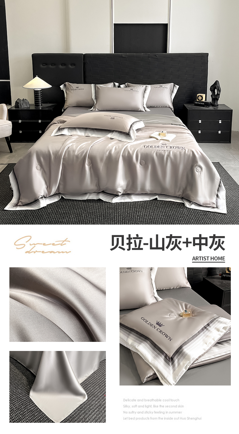 • 91家纺网 家纺一手货源 找家纺 (总)笙意家纺 2026新款水洗冰丝刺绣宽边夏被四件套-艾斯系列,艾斯-白+奶茶,艾斯-白+天蓝,艾斯-宾利蓝+奶茶,艾斯-山灰+中灰,艾斯-深蓝+浅蓝,艾斯-中灰+山灰