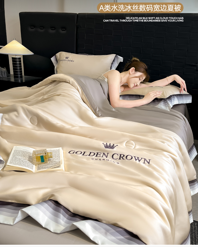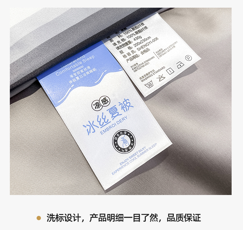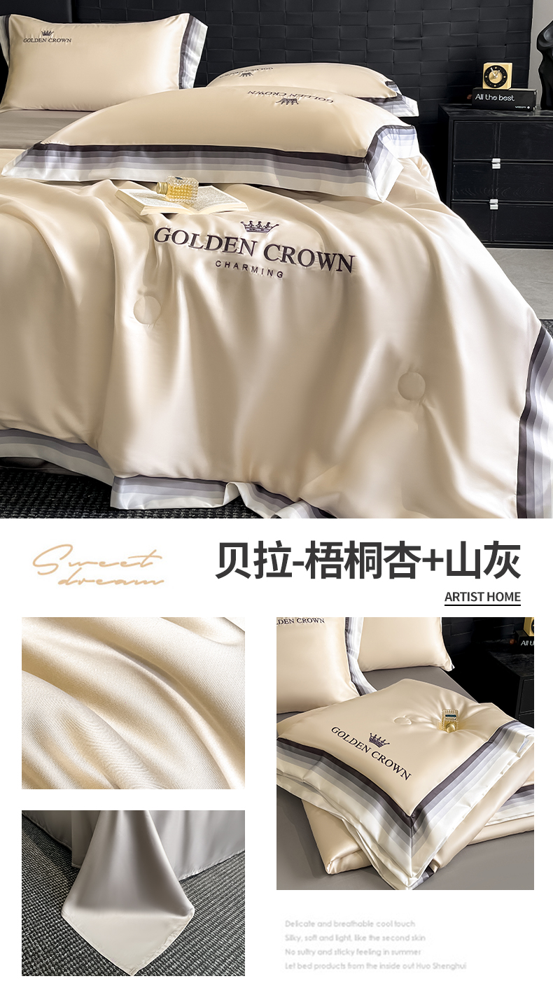 • 91家纺网 家纺一手货源 找家纺 笙意家纺 2026新款水洗冰丝数码宽边刺绣夏被夏凉被空调被-贝拉系列 贝拉-梧桐杏+山灰